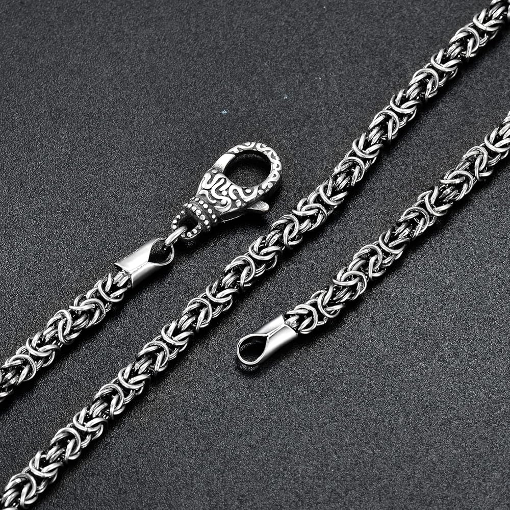 【سلاسل من الفضة الإسترلينية الحقيقية】 - السلسلة ومشبك جراد البحر مصنوعان يدويًا من الفضة الإسترلينية عيار 925 النقية عالية الجودة. على عكس المعادن الرخيصة، فإن سلسلة الفضة الإسترلينية لا تسبب الحساسية لبشرتك ومع العناية الصحيحة، سوف تدوم مدى الحياة، وهذا هو السبب في أننا نستخدم دائمًا مواد عالية الجودة. القلادة البيزنطية عرض 3 ملم وطول 18 بوصة. الوزن 19.66 جرام. من 40.64 سم إلى 60.96 سم لتختار من بينها. إغلاق بمشبك قوي وآمن على شكل سرطان البحر. مناسب لارتداء الرجال والنساء البالغين.
