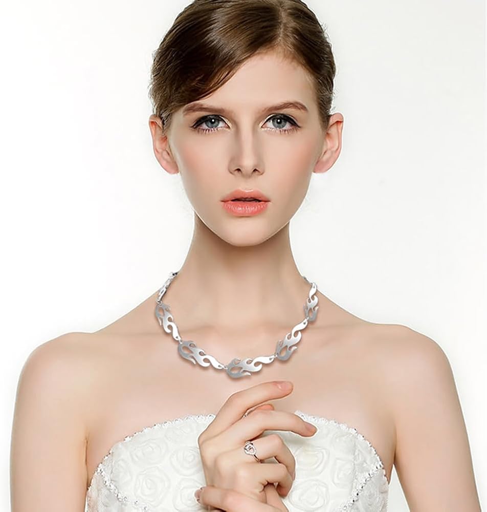 التصميم: تميز بين الجميع مع هذه القلادة ذات اللهب الناري، مثالية لكل من النساء والرجال الذين يحبون أزياء البانك وأزياء الشارع.