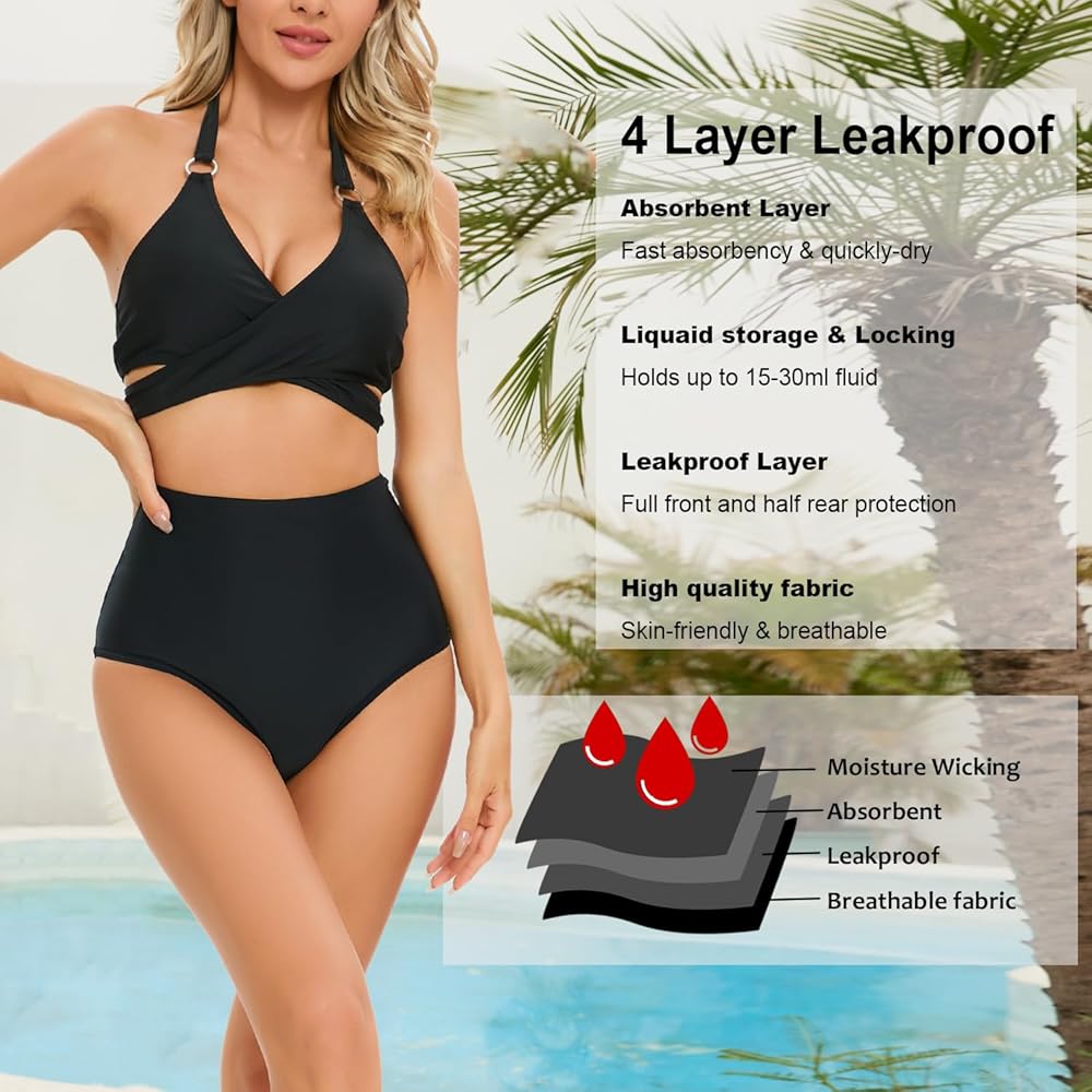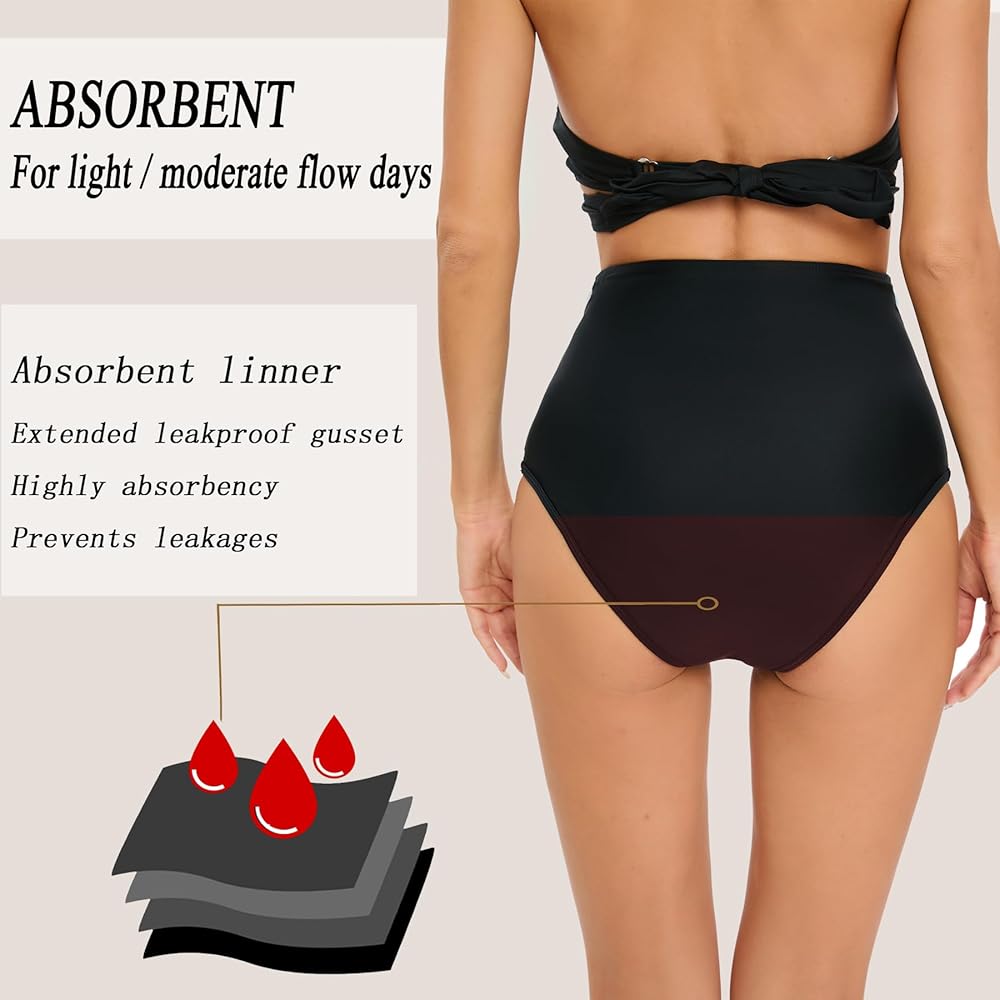 • ☀【جزء سفلي للسباحة مقاوم للتسرب للنساء】يتحمل 15-30 مل من تدفق الدورة الشهرية أو التسربات المتوسطة لمنع التسربات إلى الماء أو التغلغل. لا حاجة إلى سدادة قطنية أو فوط إضافية أثناء ممارسة الأنشطة المائية والعطلات والتخييم والحدائق المائية والشاطئ وفي المنتجع.