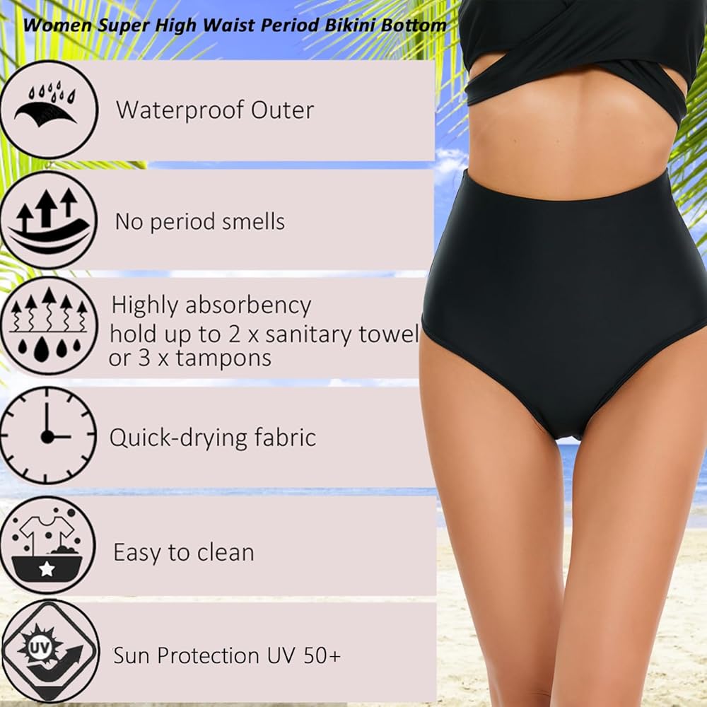 • ☀【الخامة: 82% نايلون، 18% سباندكس، الأشعة فوق البنفسجية 50+. الجزء الخارجي المقاوم للماء و4 طبقات ممتدة مدمجة تجعل الجزء السفلي من ملابس السباحة هذا أكثر جفافًا سريعًا وامتصاصًا عاليًا للحصول على أفضل نظافة بدون روائح فترة الحيض.