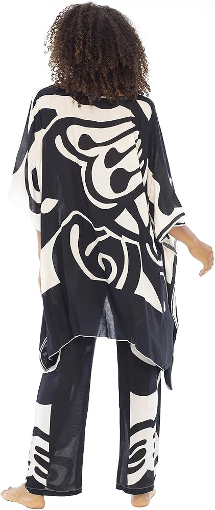 مقاس انسيابي وجذاب. سترة علوية على شكل بونشو برقبة على شكل حرف V فضفاضة وناعمة. تبدو رائعة على طماق. يمنحك البنطلون المترهل برباط قابل للتعديل الملاءمة المثالية. يمكن إقرانه مع دبابة أو تي شيرت.