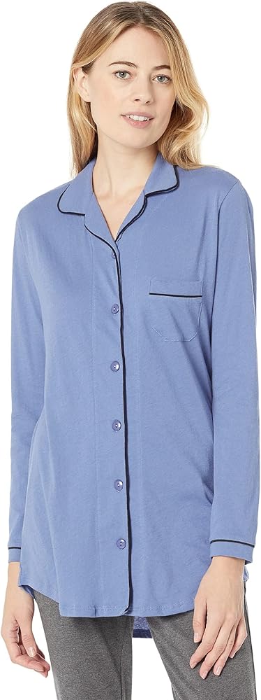 يتميز قميص Only Hearts الليلي المصنوع من القطن العضوي ذو الأنابيب الأمامية بأزرار إغلاق كاملة وأكمام طويلة على طراز قميص النوم مع خط عنق على شكل حرف V وذيل قميص منحني، مما يضمن الراحة طوال الليل.