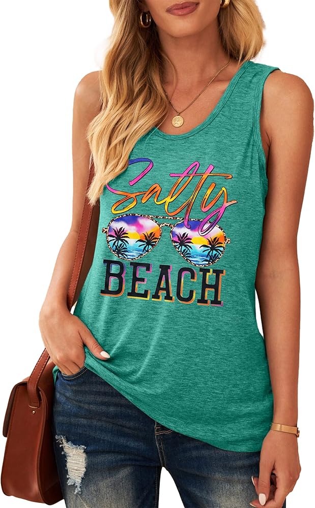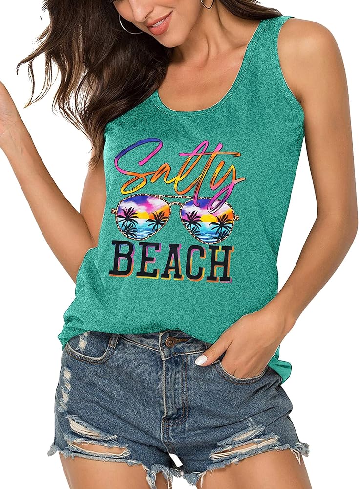 Women funny graphic tshirt casual vacation outdoor shirts-Love this funny sleeveless beach graphic tee as much as you love the beach in summer!