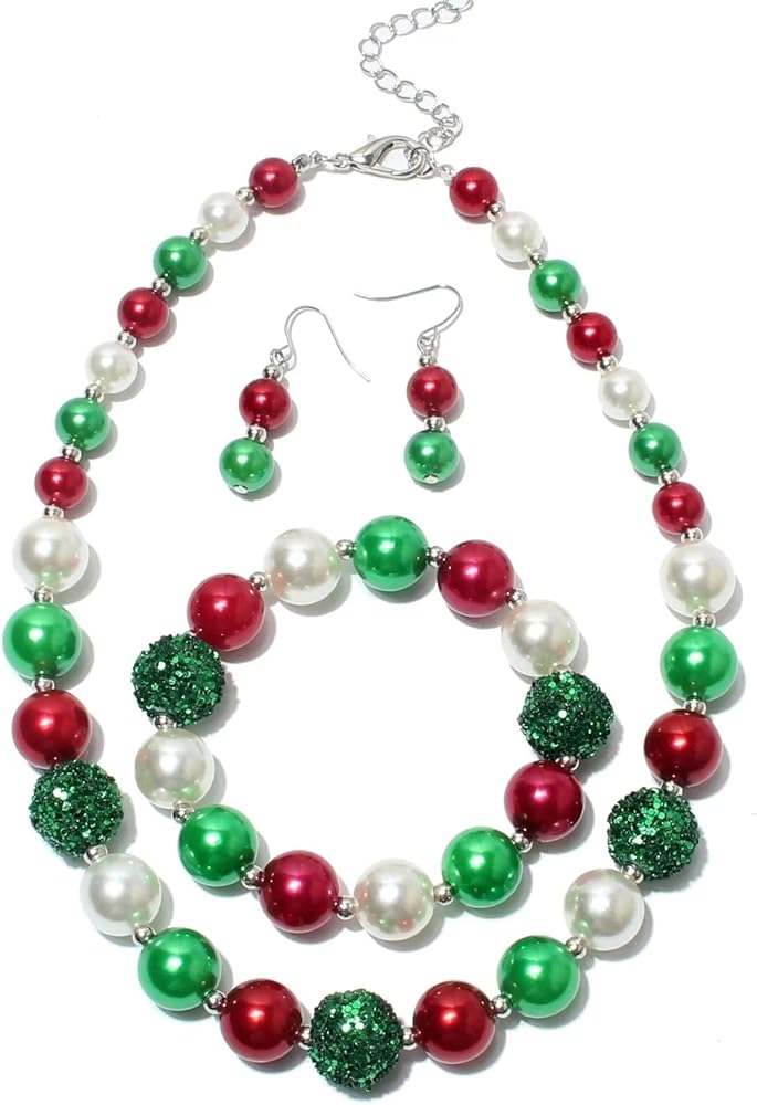This Christmas Accessory Set Includes A Necklace, A Pair Of Earrings, And A Bracelet. Easy To Match Christmas Costumes. Become More Festive This Holiday Season With Our Christmas Jewelry Set.