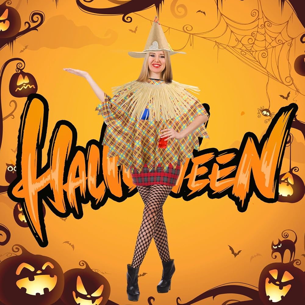 High-Quality Scarecrow Poncho: This Scarecrow Poncho is made of polyester material,reliable and comfortable , ensuring durability and long-term use. With its quality construction, you can confidently wear it for Halloween parties and cosplay events.