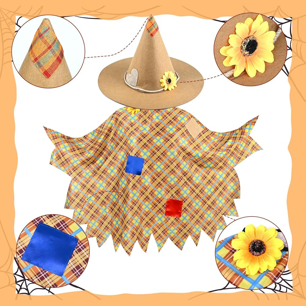 Stylish and Detailed Design: The scarecrow hat is designed with classic plaid patches and a sunflower, adding a touch of charm and authenticity to your costume. Every detail is carefully crafted to give you a realistic look, making you stand out from the crowd.