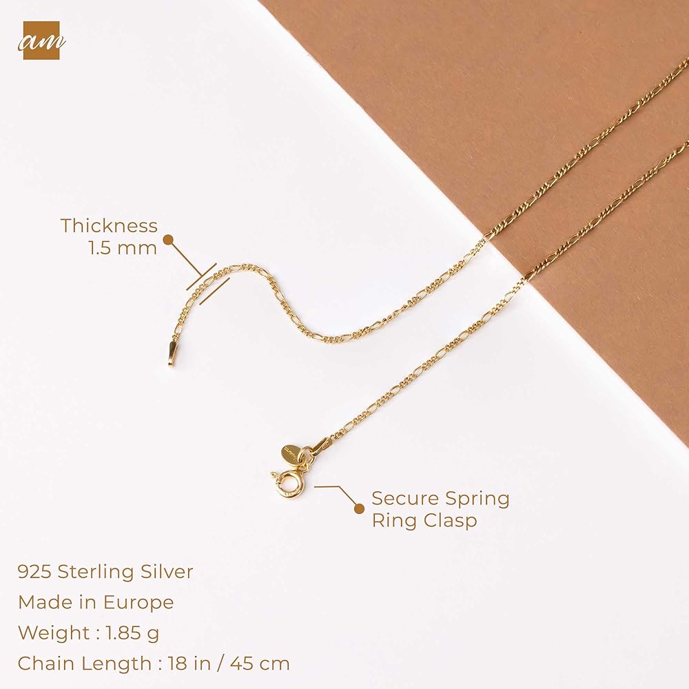 DELICATE DESIGN - Very lightweight and comfortable to wear. Chain Width: 1.5 mm. Metal Weight: 2.07 g. Chain Length: 18inch/45cm.