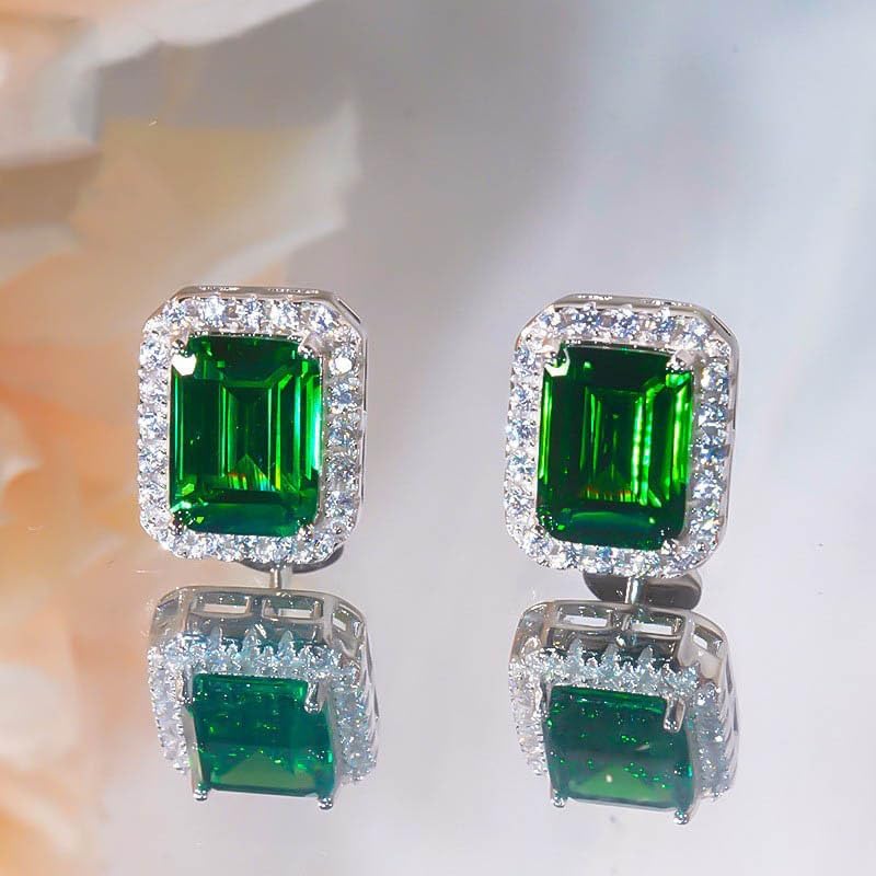 【تصميم أنيق】تتميز هذه الأقراط المصنوعة من الذهب عيار 14 قيراط بأحجار الزمرد المقطوعة بشكل مربع ومزينة بلمسات مويسانيتي، مما يخلق مظهرًا راقيًا وخالدًا مناسبًا لمختلف المناسبات.