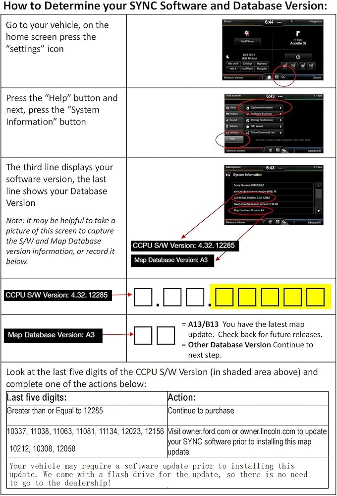 متوافق مع نظام الملاحة فورد / لينكولن SYNC2، مزامنة أحدث خرائط الولايات المتحدة الأمريكية/كندا لعام 2022