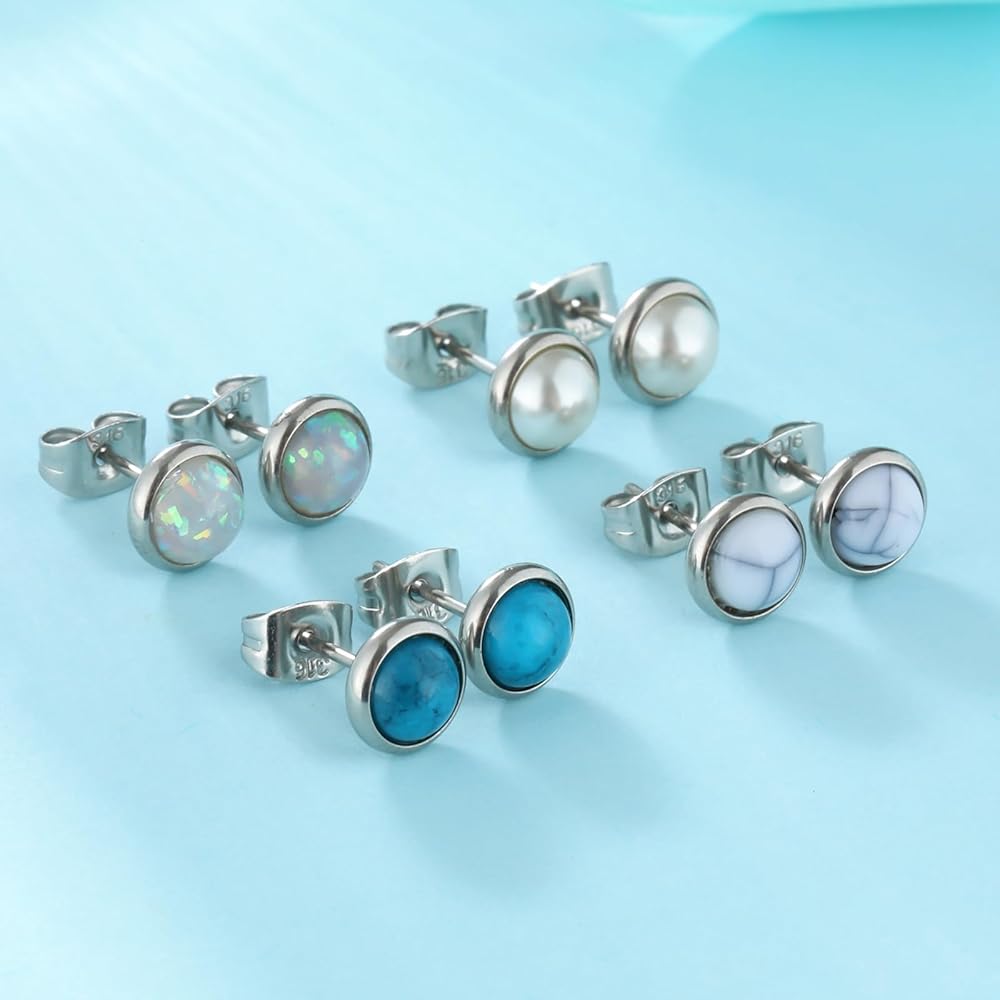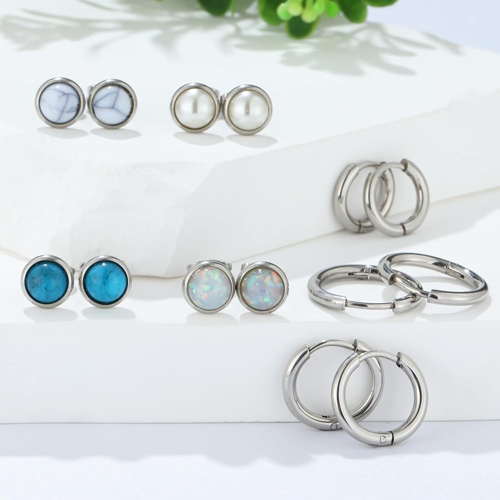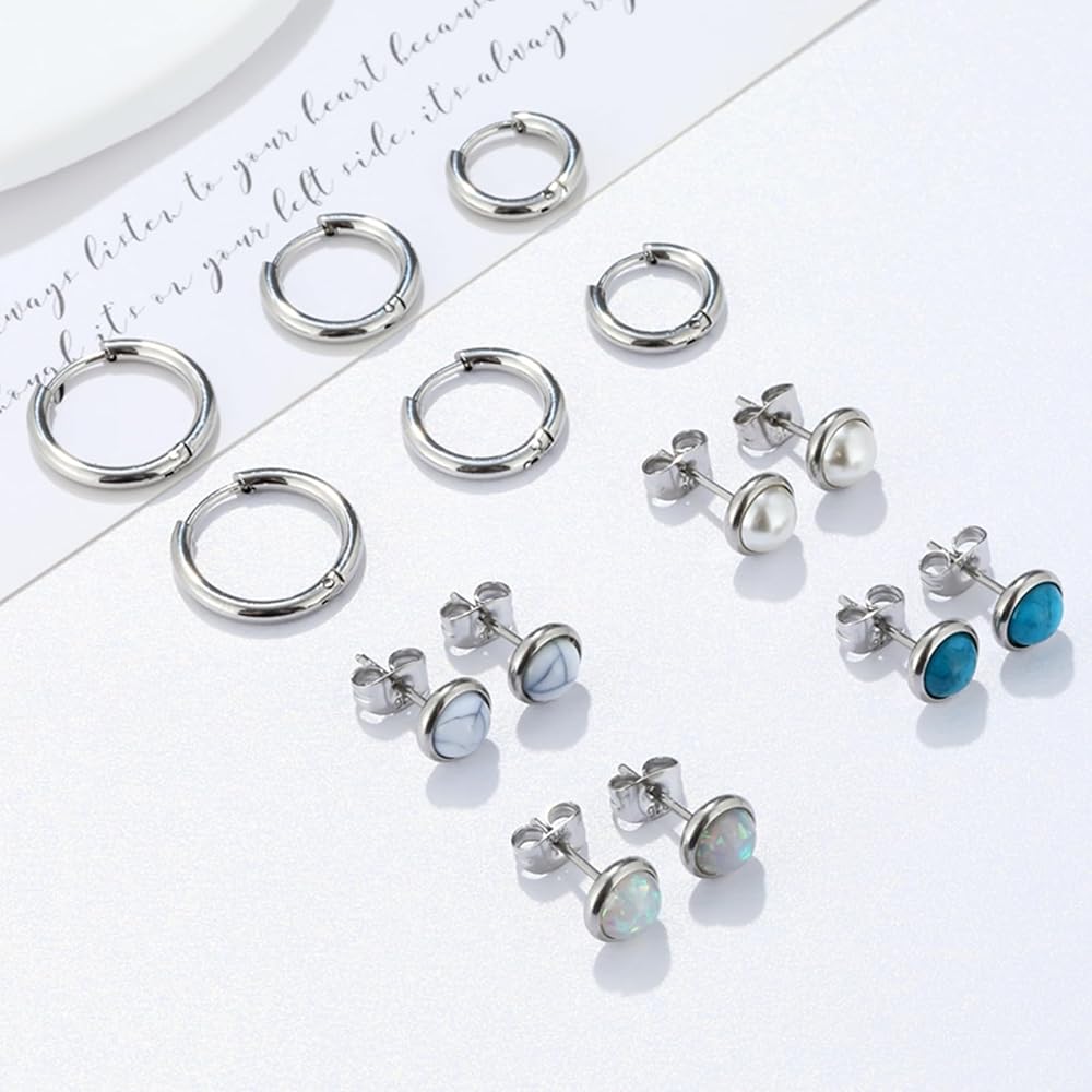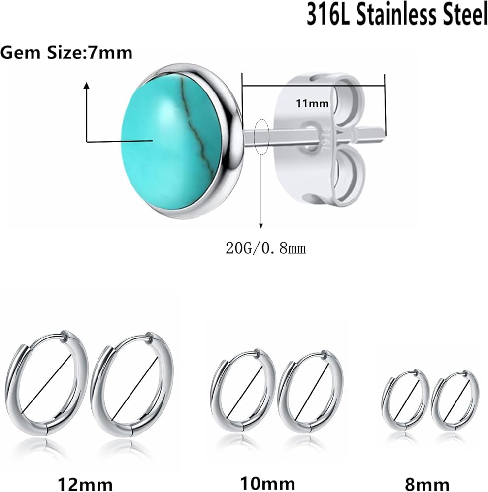 7 أزواج من الأقراط الجراحية المصنوعة من الفولاذ المقاوم للصدأ |أقراط أوبال مضادة للحساسية | مجموعة أقراط اللؤلؤ الفيروزي للنساء والرجال حلقة هوجي الصغيرة 20 مجموعة أقراط للمجوهرات المثقوبة المتعددة