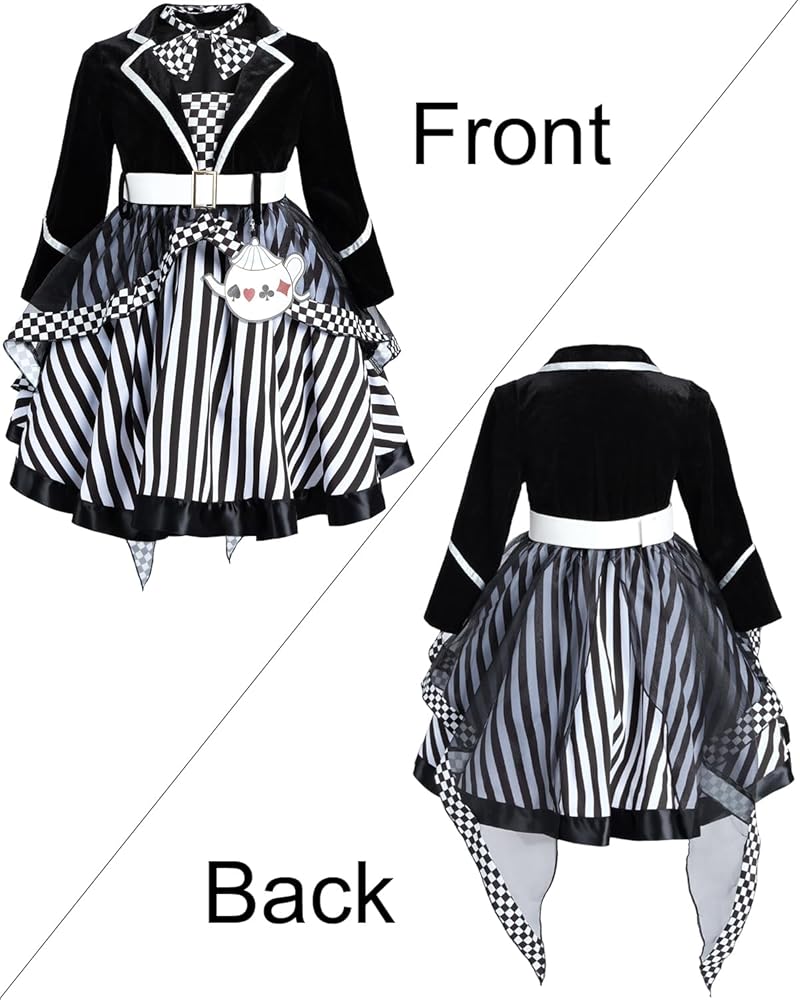 【مناسبات قابلة للتطبيق】: فستان Mad Hatter الكلاسيكي والمرح للفتيات مليء بأجواء الهالوين، وهو رائع لحفلات الهالوين، ومؤتمرات الثقافة الشعبية، ارتدي زي Mad Hatter هذا مع March Hare وDormouse وAlice وارمي الشاي التنكرية لمجموعتك الخاصة الحفلات، الأداء المسرحي، الارتداء اليومي، إلخ.