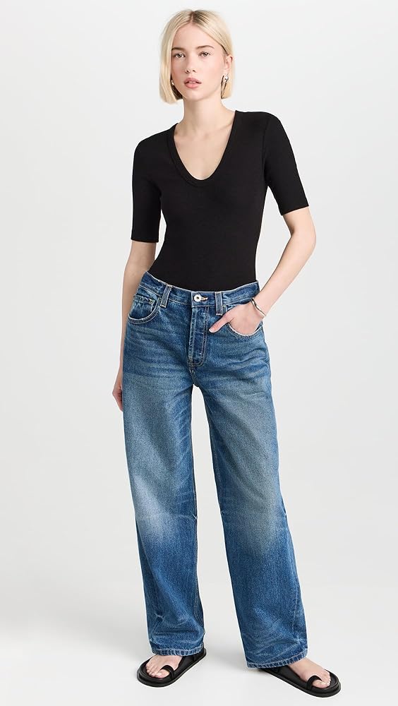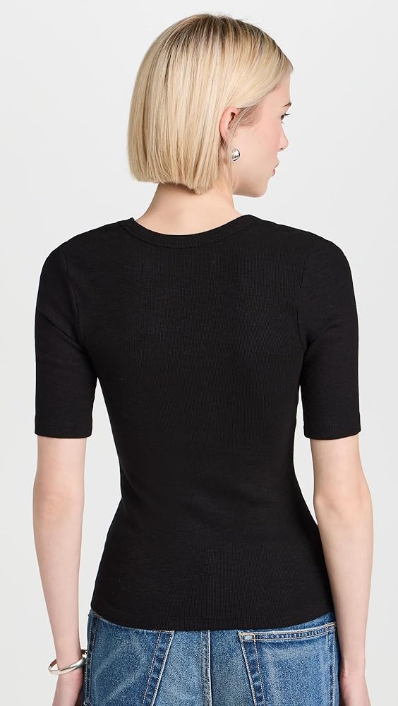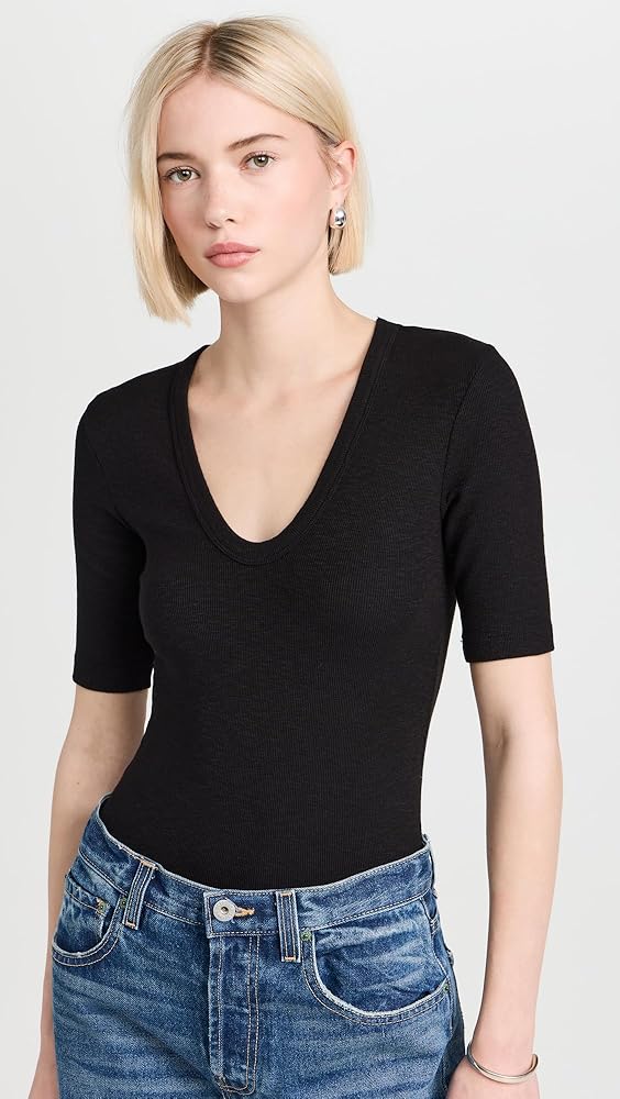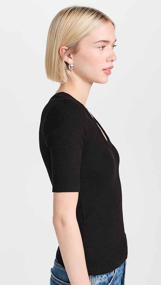 تي شيرت نسائي من Enza Costa ذو ملمس مضلع ورقبة واسعة نصف كم