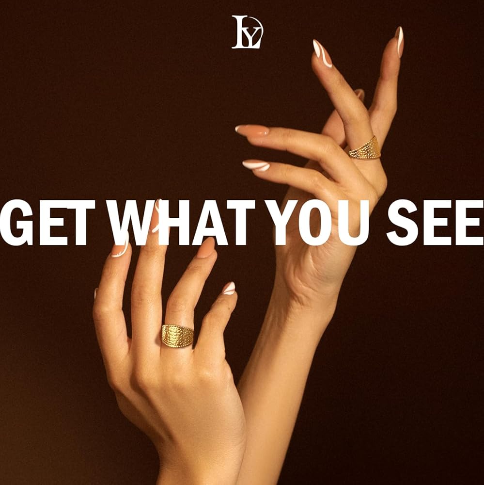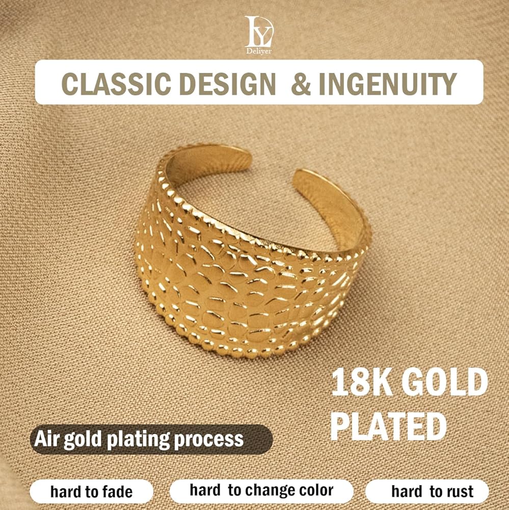 قل "لا" للتلاشي مضمون بنسبة 99%، خواتم الأساور الذهبية لسطح النساء مصنوعة مصقولة، ولن تحول أصابعك إلى اللون الأخضر. الخواتم الذهبية السميكة مطلية بالذهب الحقيقي عيار 18 قيراط مع محتوى ذهبي بنسبة 5% لضمان الحفاظ على لونها الطبيعي لمدة 469 يومًا