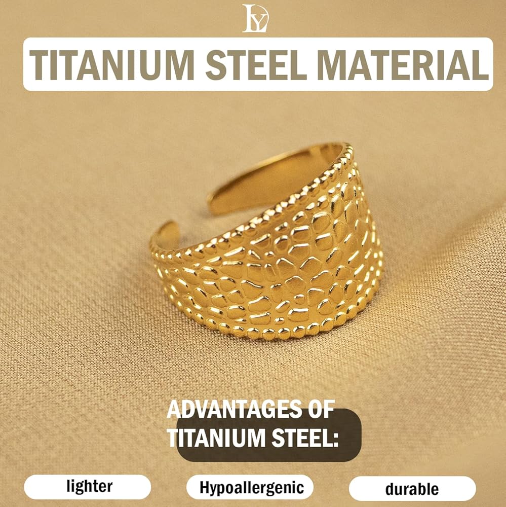 خاتم ذهبي سميك آمن لا يسبب الحساسية للنساء أو الرجال مصنوع من مادة آمنة من ستيل التيتانيوم عالي الجودة، 0% من الرصاص والنيكل، لا يسبب الحساسية أو تهيج الجلد
