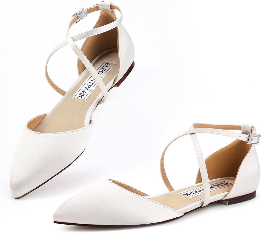 أحذية الزفاف المسطحة للعروس: أحذية مسطحة مريحة لحفلات الزفاف، مثالية ليومك الخاص، هذه الأحذية المسطحة الأنيقة والكلاسيكية مصممة لتجعلك تبدين جميلة في يوم زفافك.