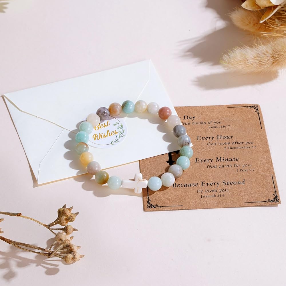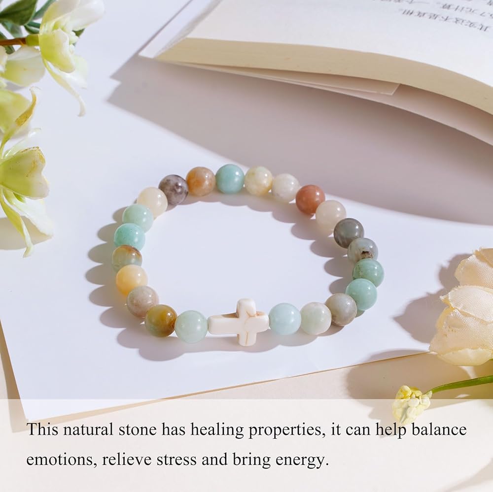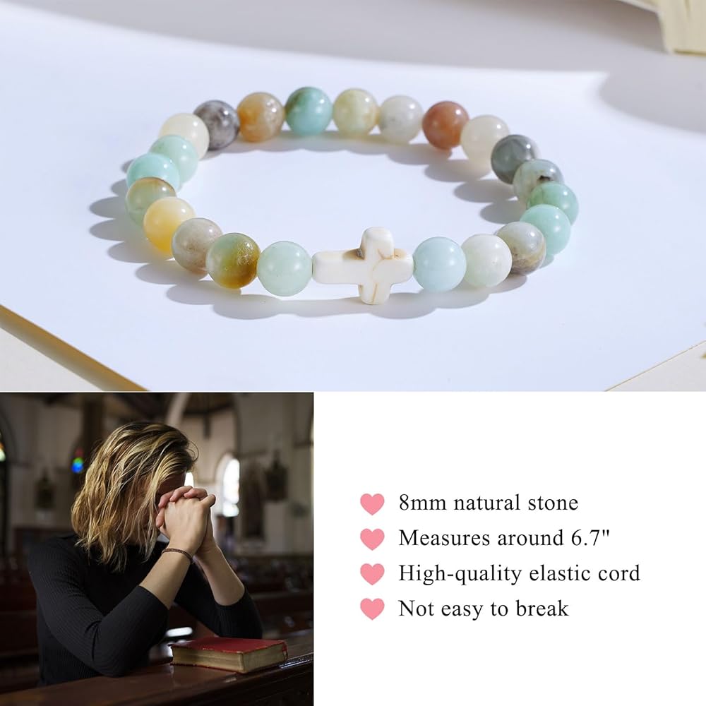 【الخامة: هذا السوار المتقاطع مصنوع من حجر طبيعي مقاس 8 مم وحبل مرن. هدية مثالية للنساء في أعياد الميلاد والكريسماس وعيد الفصح والمناسبات الأخرى.