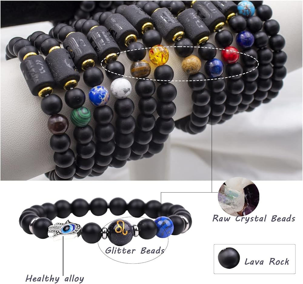 🔮 كريستال وسبائك فاخر 🔮 أساور البروج الخاصة بنا مصنوعة من حجر طبيعي عالي الجودة والذي يمكن أن يساعد في توازن طاقة جسمك ويساعد في تخفيف التوتر. والجزء المعدني كله صحي للبشرة. خالية من الرصاص والنيكل وصديقة للبيئة.