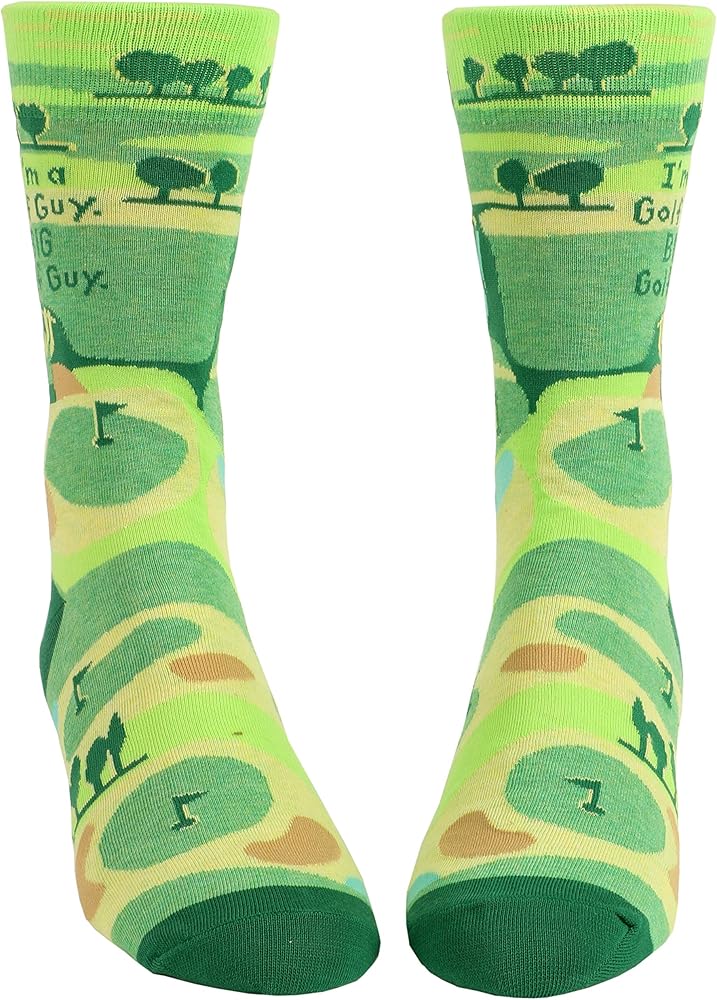 I'M A GOLF GUY. BIG GOLF GUY. Men's Crew Socks from Blue Q. Fit men's show size 7 to 12. Woven with soft, luxurious combed cotton, nylon for strength and spandex for long-lasting fun. 1% of sales benefit Doctors Without Borders/Medecins San Frontieres. They're Nobel Peace Prize-winning first responders to emergencies, epidemics and natural disasters around the world.