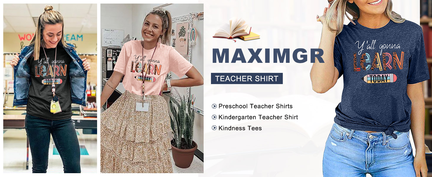 • المزايا: قمصان مدرسية للنساء، قمصان مدرسية سوف تتعلم اليوم، قمصان مدرسية لمرحلة ما قبل المدرسة، قمصان مدرسية للنساء سوف تتعلم اليوم، قمصان لمعلمي الأطفال الصغار، قمصان لطيفة للمعلمين، قمصان معلمي الرعاية النهارية، قميص مدرس مضحك، قميص المعلم الأكثر إثارة، القراءة قمصان المعلمين.