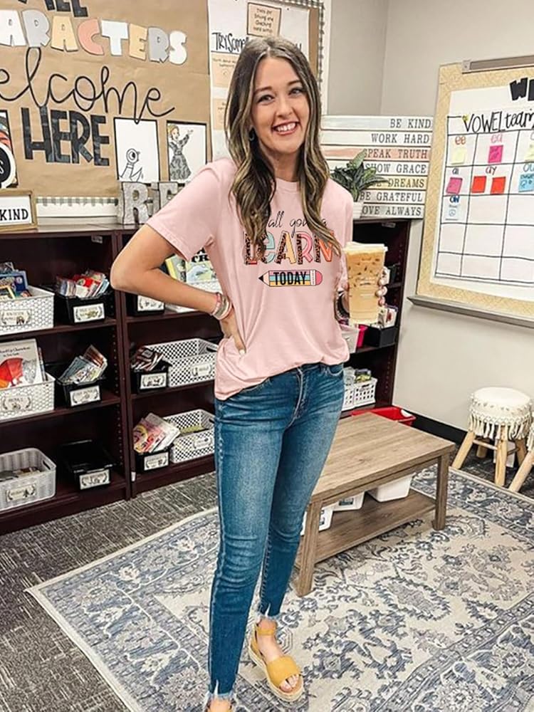 قمصان المعلم للنساء ستتعلم اليوم قميص معلم ما قبل المدرسة قمصان رياض الأطفال بأكمام قصيرة تي شيرت