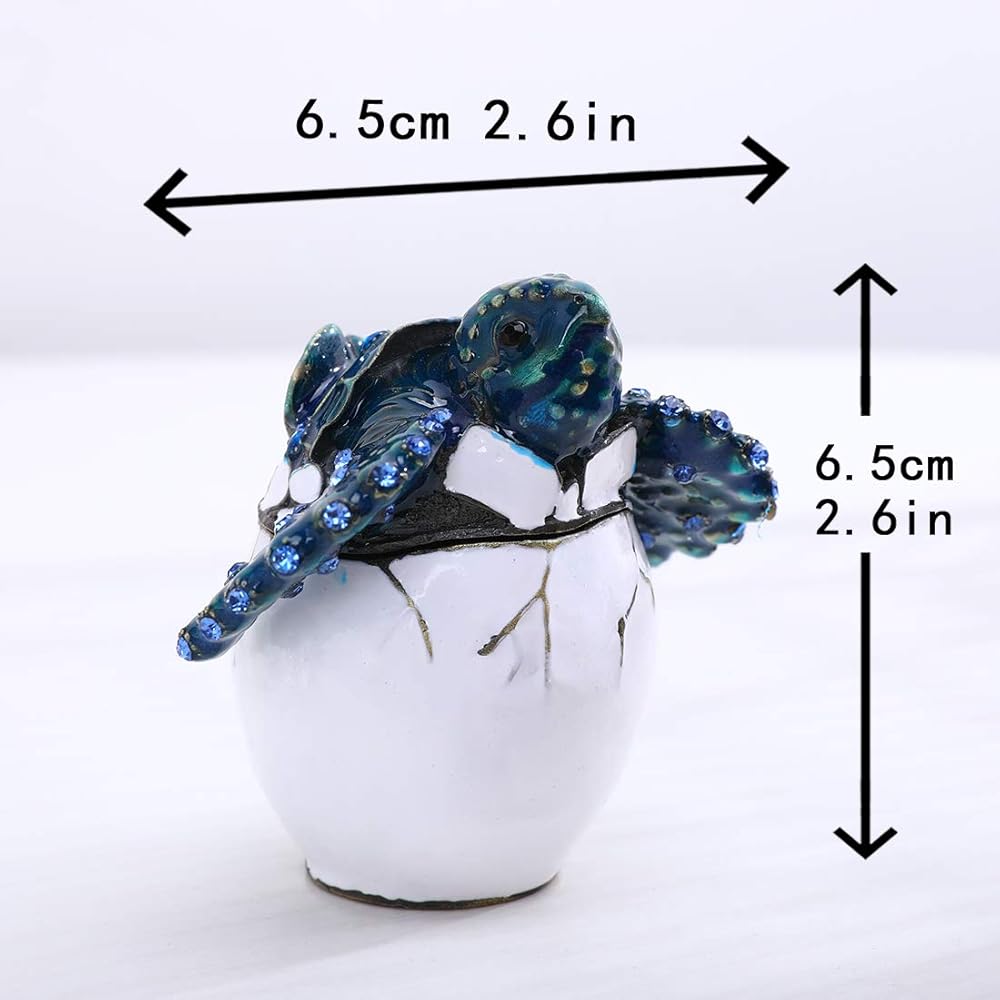 إنه صندوق حلية على شكل سلحفاة بحرية مزود بمساحة تخزين صغيرة لأقراطك أو خواتمك أو قلادتك أو غيرها من الحلي الصغيرة.