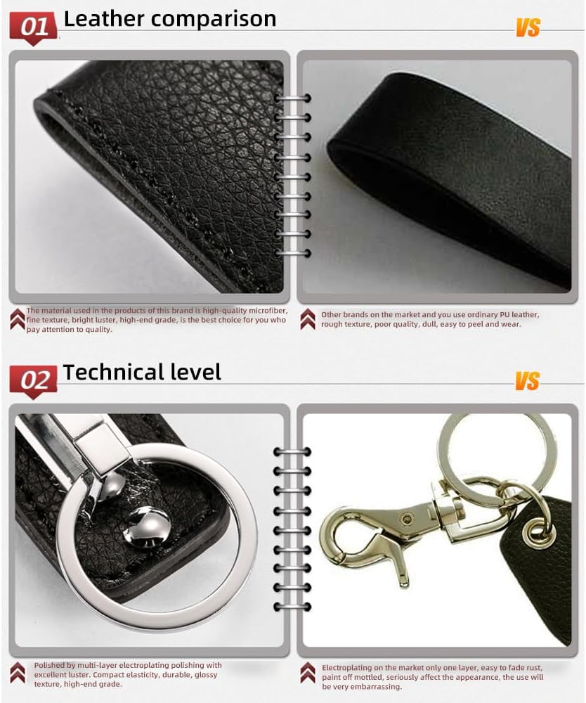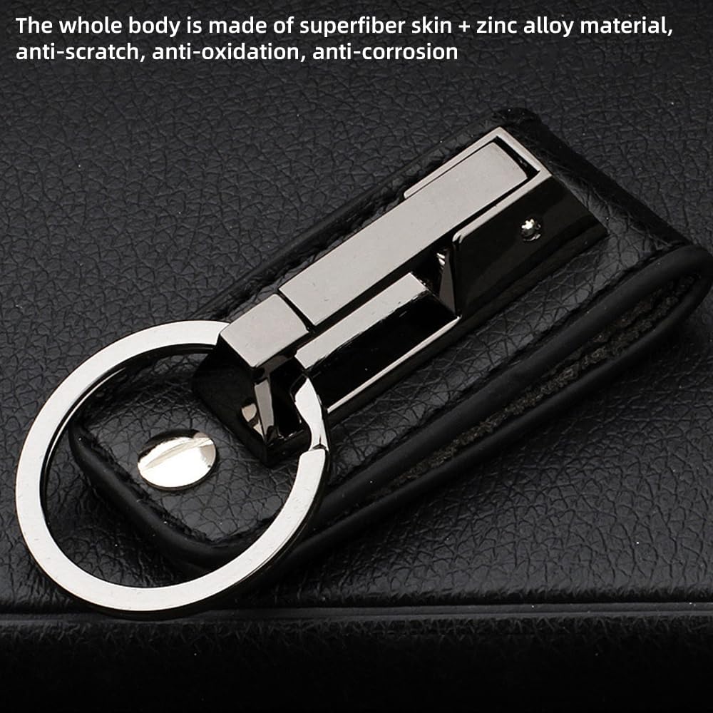 With careful machine polish and nice finish,no sharp edges at all,it is a smooth leather keychain for car keys which offers you comfortable feelings while touching.Car key chain belt holder metal part is made with top quality stainless steel, by electroplate and polishing tech,luxury and durable, color won't fade. mens key chain leather part is used with top quality cow leather, that is very different from men made leather, heavy duty and secure for keys
