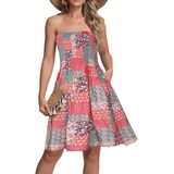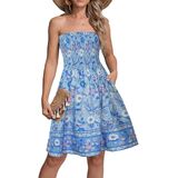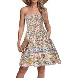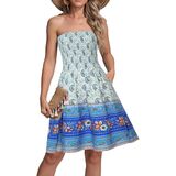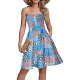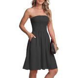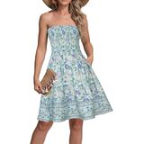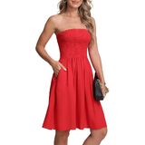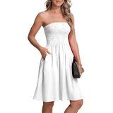 النمط: جزء علوي مكشكش مرن وتنورة على شكل حرف A، صدر مرن، بدون أكتاف، خفيف الوزن. فستان شاطئ صغير كاجوال، يمكن ارتداؤه كفستان يومي أو كغطاء