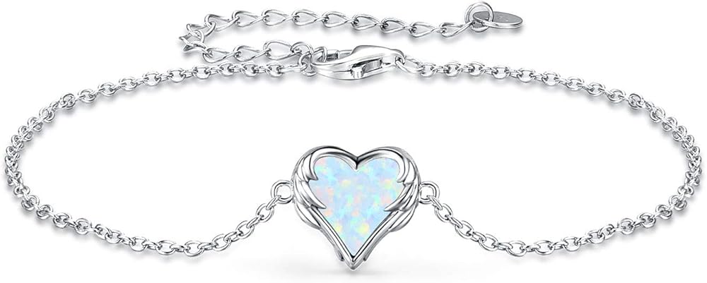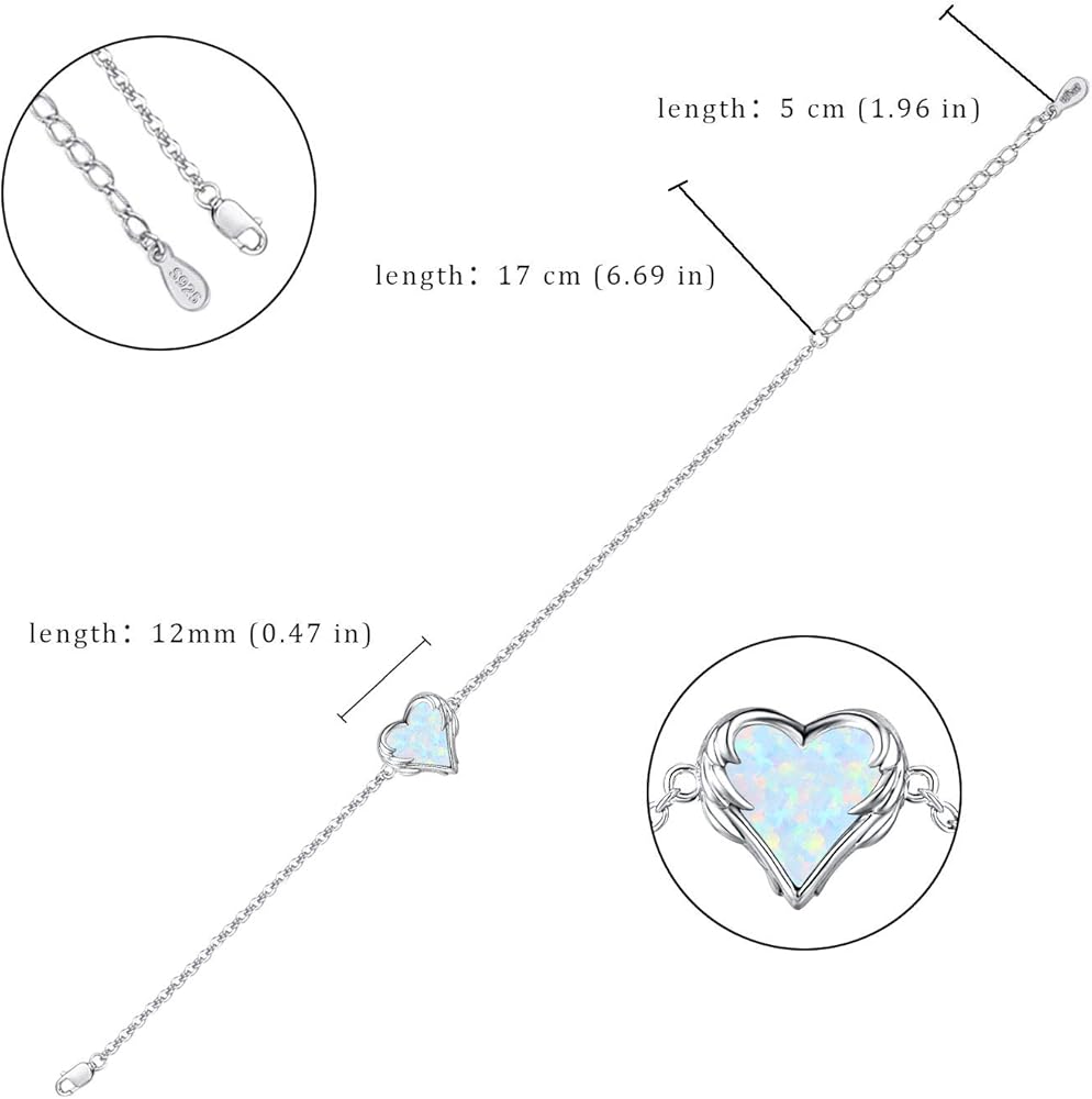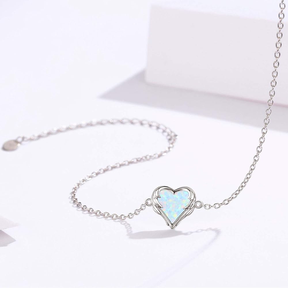 كونبو سوار اوبال على شكل قلب من الفضة الاسترلينية 925، اساور اجنحة الملاك للنساء، سوار انيق بدلاية على شكل قلب اوبال قابل للتعديل ومضاد للحساسية، مجوهرات اوبال هدايا للبنات