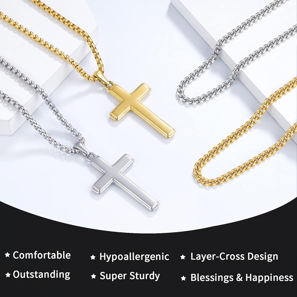 【أفكار هدية مثالية】ليس هناك هدية أفضل من البركات والسعادة، وستكون أفضل لو كانت أكثر تزيينًا. هذه القلادة المتقاطعة مع الصليب هي هدية مثالية. في عيد الميلاد، والكريسماس، وعيد الأم، وعيد الشكر، أرسل قلادة الصليب إلى والدك أو والدتك أو أعز شخص، وأرسل حبك وبركاتك لهم.