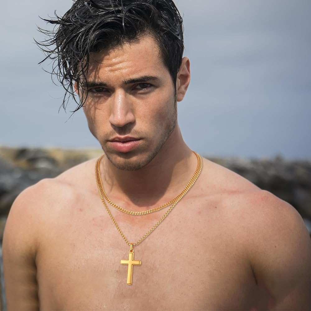 【تصميم فاخر بطبقة مزدوجة】بالمقارنة مع القلادة الرتيبة، فإن هذه القلادة المتقاطعة ذات الصليب تتميز بتصميم مزدوج الطبقات. كل طبقة من القلادة المتقاطعة لها أنماط وأطوال مختلفة. المواد والهيكل موثوقان للغاية ويمكنهما منع الكسر بشكل فعال. القلادة المتقاطعة ذات الطبقات تجعل زخرفة رقبتك أكثر امتلاءً وهي زخرفة مثالية للرجال والنساء البالغين.