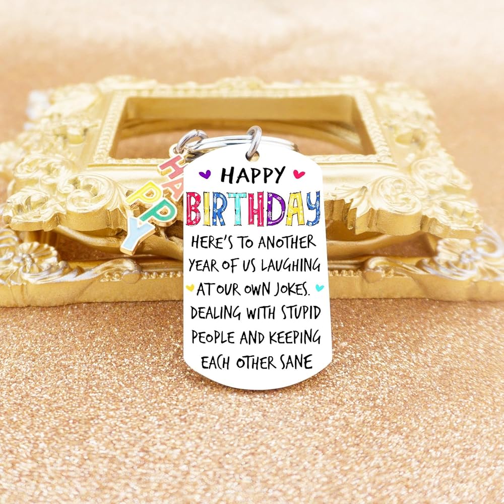 Ibiwe Best Friend Birthday Gifts For Friends Funny Keychain For Bestie Friends Sister Brother Coworker Gifts For Her Him Birthday Party Friendship Gifts Happy Birthday Keyrings, Silver, S