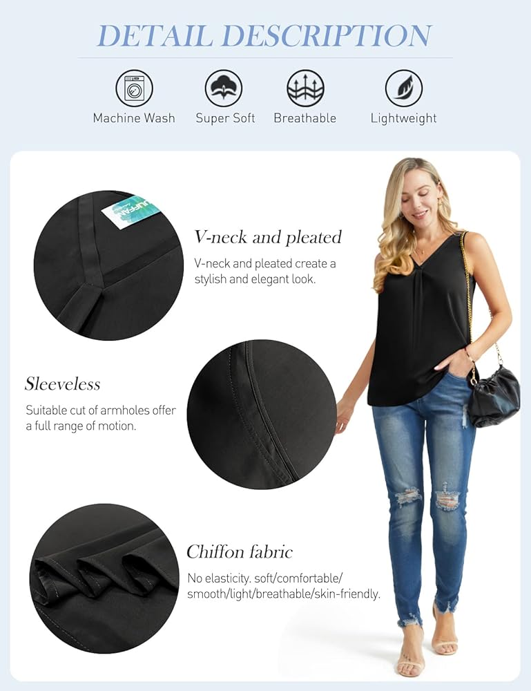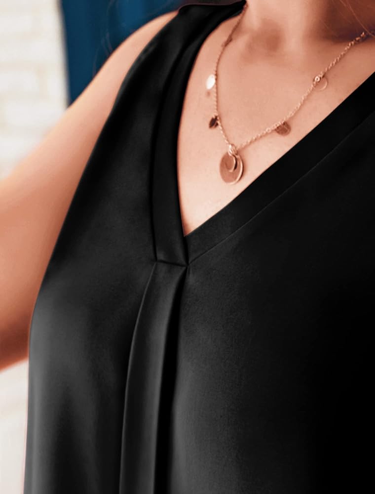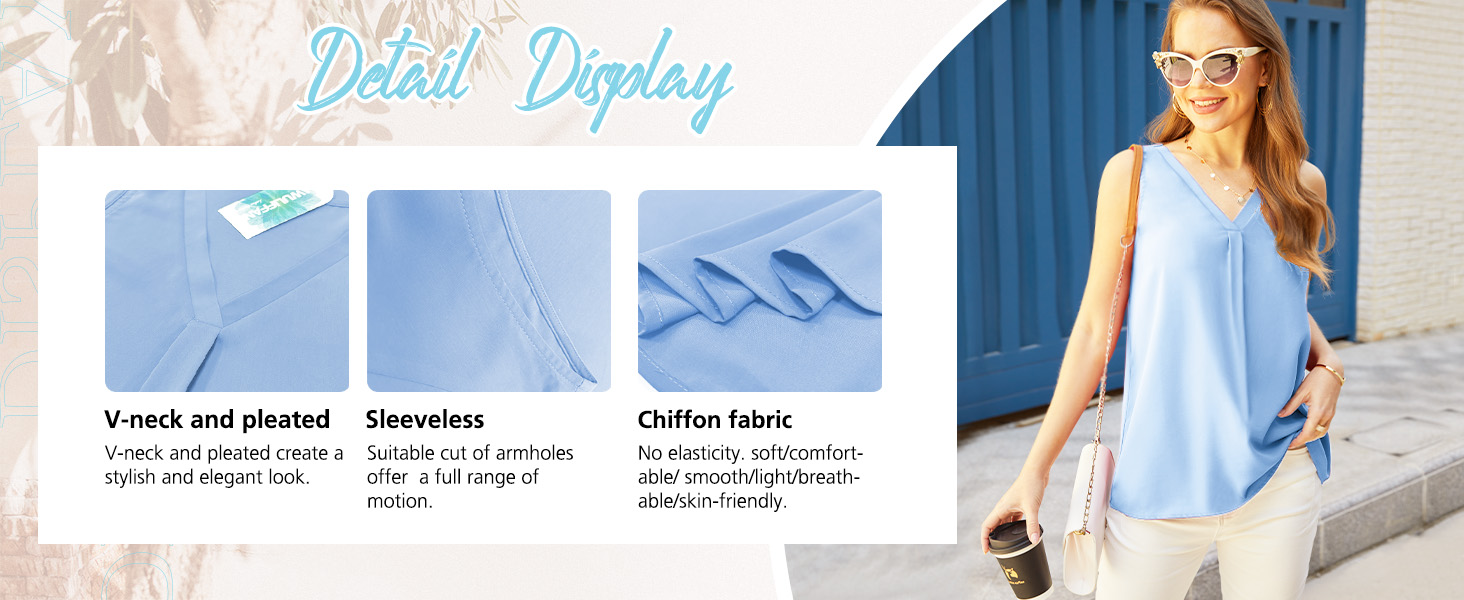 المزايا: قمصان بدون أكمام، بلوزة برقبة على شكل حرف V، قميص مطوي. تضيف الطيات الموجودة أسفل الرقبة على شكل حرف V إحساسًا بالتصميم إلى هذا القميص الأساسي بدون أكمام، مما يجعله يبدو بسيطًا وأنيقًا. ارتديه لإنشاء OOTD الخاص بك بسهولة.