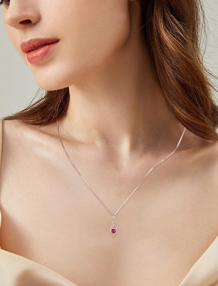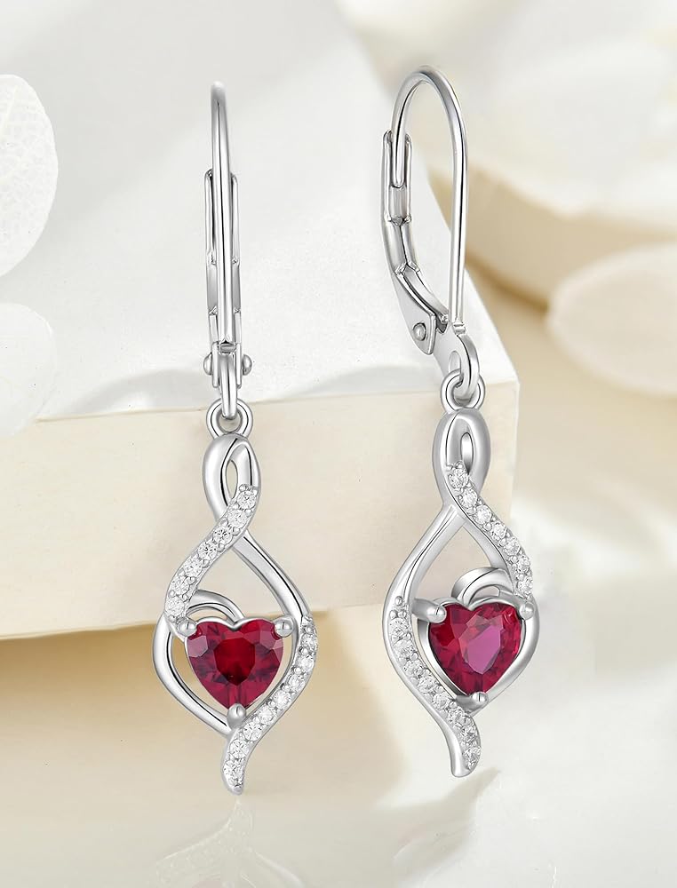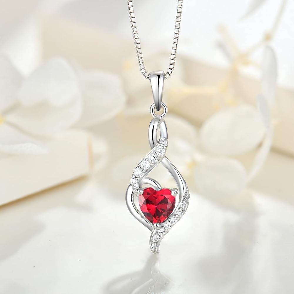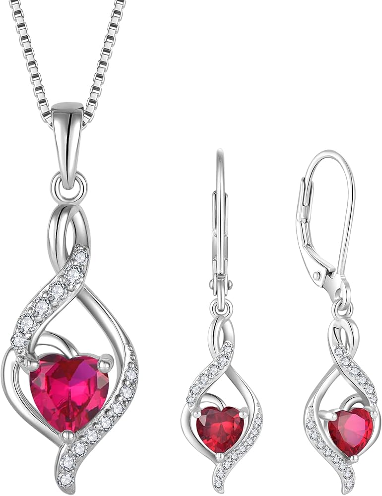 JIWOY Infinity Necklace Sterling Silver Love Heart Stone Leverback Earrings Created Ruby Jewelry Set for Women