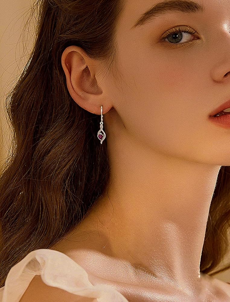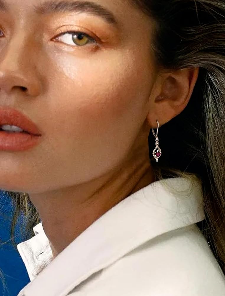 قلادة JIWOY إنفينيتي من الفضة الإسترليني على شكل قلب الحب وأقراط رافعة من حجر الياقوت مكونة من مجموعة مجوهرات روبي للنساء