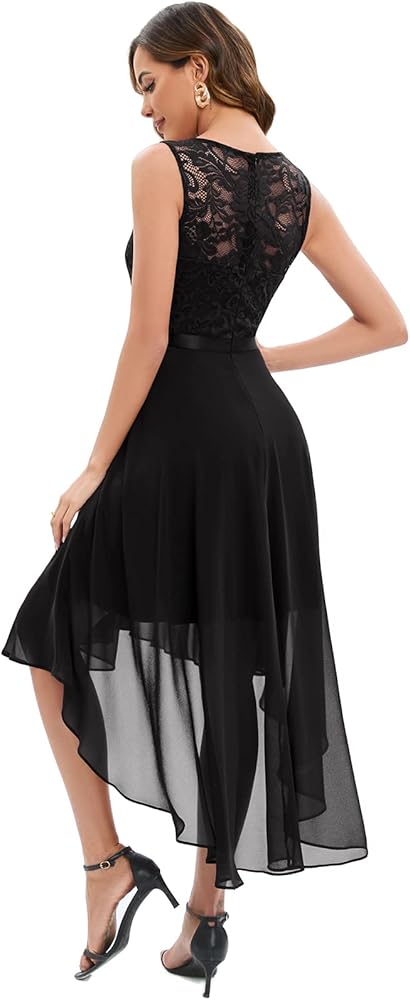 【LIGHTWEIGHT & SOFT】 Women's lace wedding guest dresses are made of stretchy lace fabric, chiffon hemline, with soft lining and concealed back zipper. Breathable and comfortable, this elegant high low prom dress will perfectly hug your body and show your romance and femininity