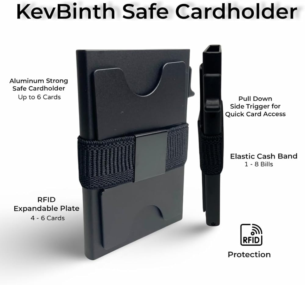خامة عالية الجودة: محفظة KevBinth هذه مصنوعة من الألومنيوم الفاخر، المعروف بقوته ومتانته وخفة وزنه. السطح مؤكسد لتوفير مظهر أنيق ومقاومة أفضل للتآكل. كما أنه مزود بطبقة مضادة لـ RFID لحماية معلوماتك الشخصية.