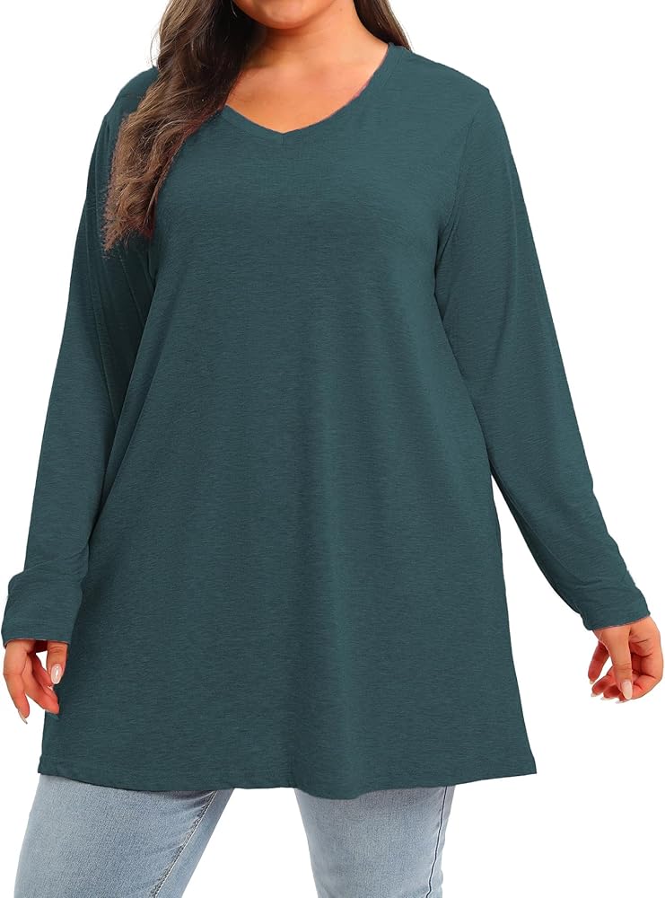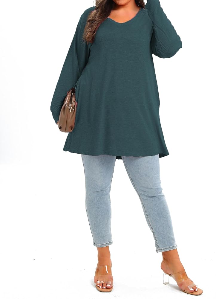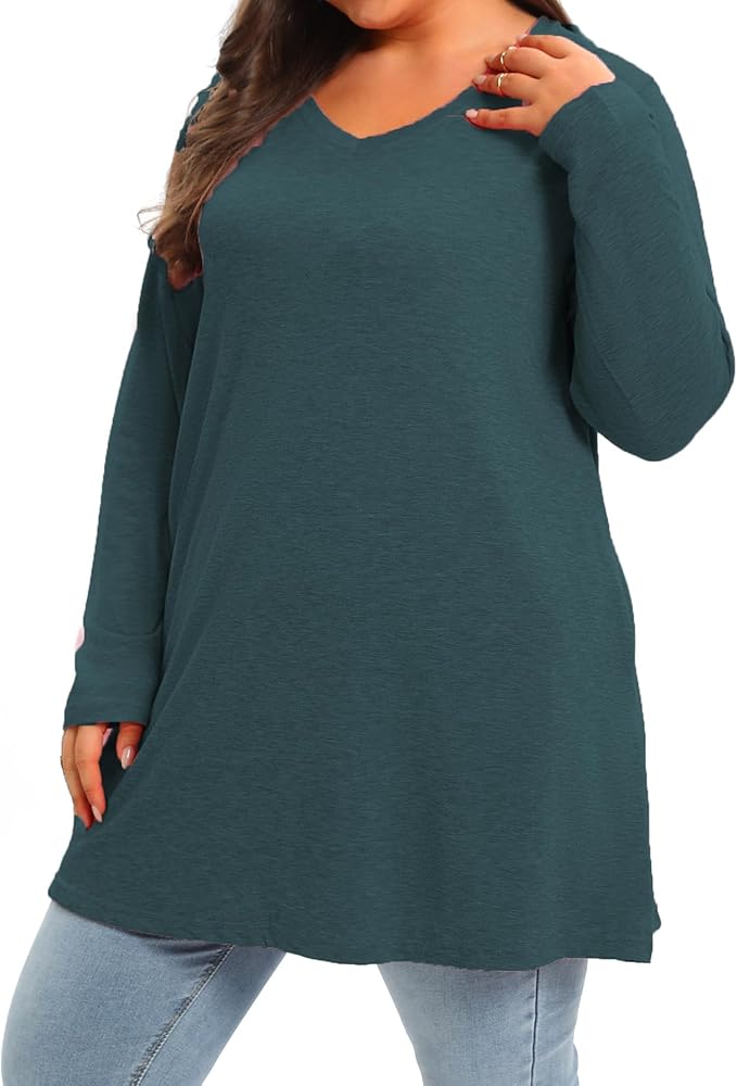 【المميزات】تتميز قمصان التونيك ذات الحجم الكبير للنساء بتغطية طول تونيك الورك، ورقبة على شكل حرف V، وأكمام طويلة، ولون ثابت، ومقاس فضفاض وفضفاض. بلوزات طويلة عصرية وأساسية بمقاسات كبيرة يجب أن تكون في خزانة ملابسك.