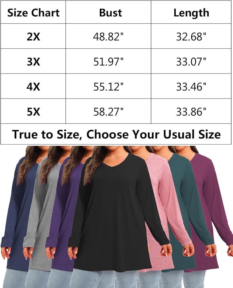 【مقاس أمريكي كبير】مقاس مضبوط، المقاس المعتاد سيكون جيدًا. 2X، 3X، 4X، 5X قمصان طويلة الحجم بمقاسات كبيرة. يمكنك أيضًا الرجوع إلى جدول المقاسات الخاص بنا الموجود في الصورة. تتوفر ألوان مختلفة لهذا التونيك الخريفي ذو الحجم الكبير.