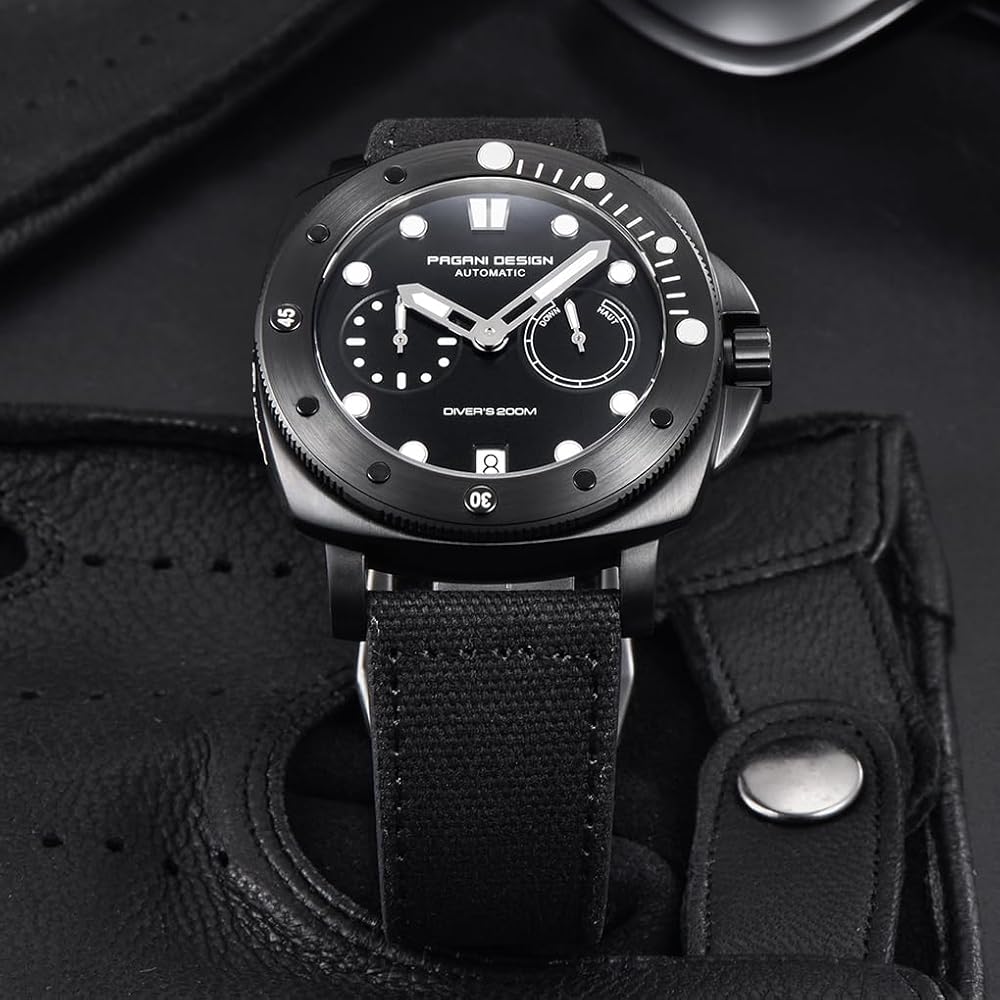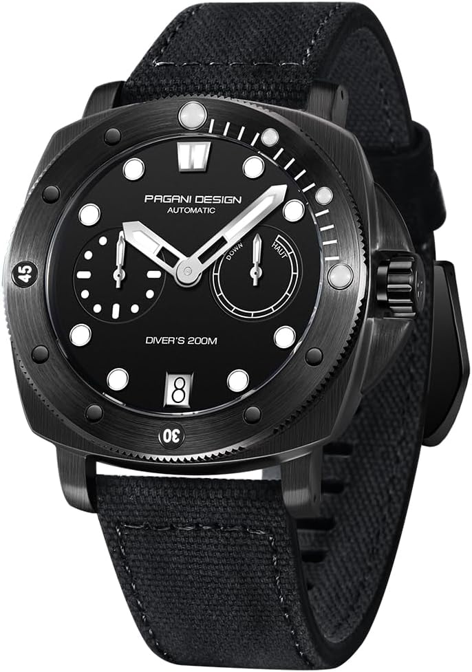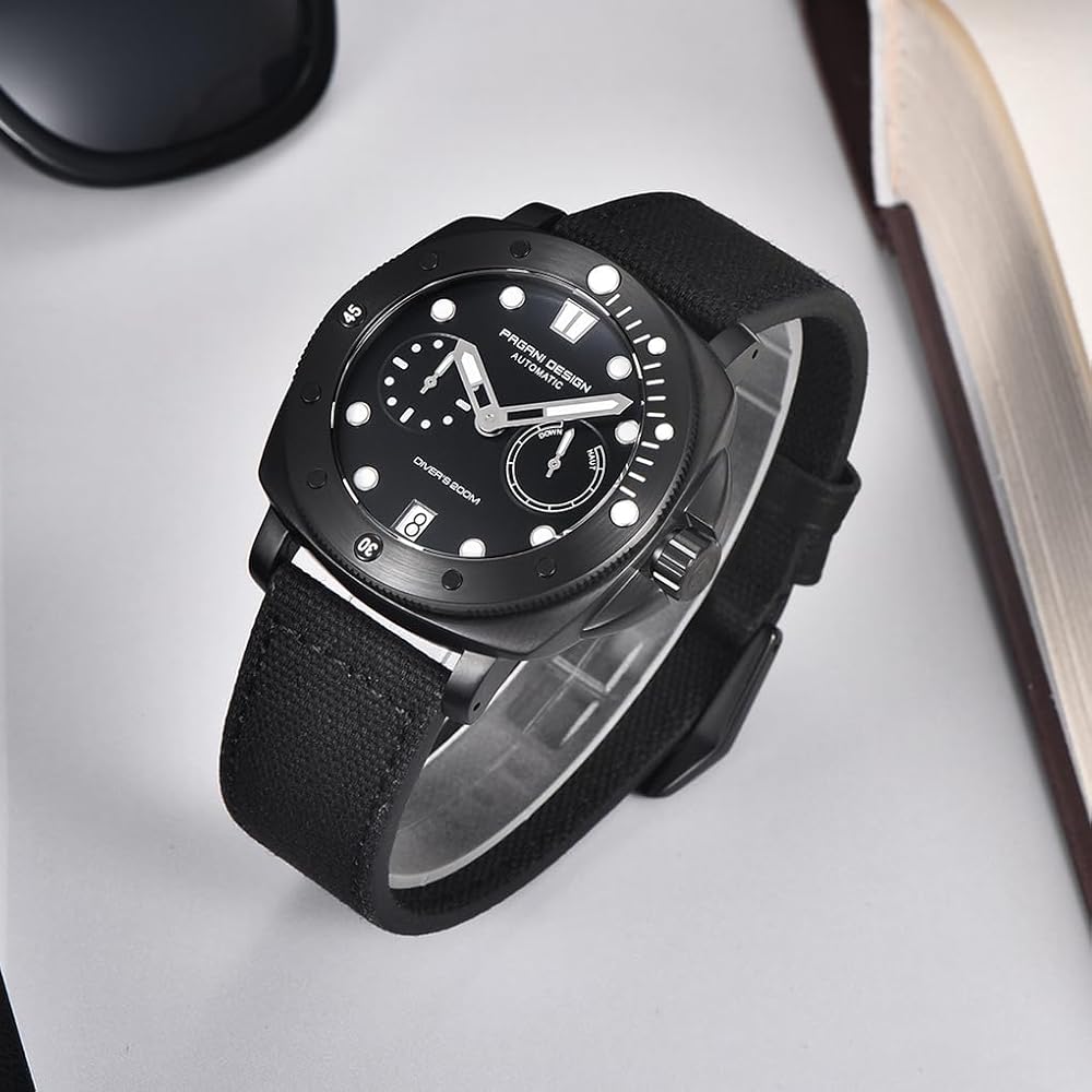 Pagani Design 1767: Pagani Design has just released the new 1767 automatic wristwatch. This watch features a distinctive square case, a dial with a power reserve indicator, a sturdy synthetic sapphire crystal, and a comfortable lightweight nylon strap. It's a military-style timepiece suitable for both home and outdoor activities, making it the perfect gift for men.
