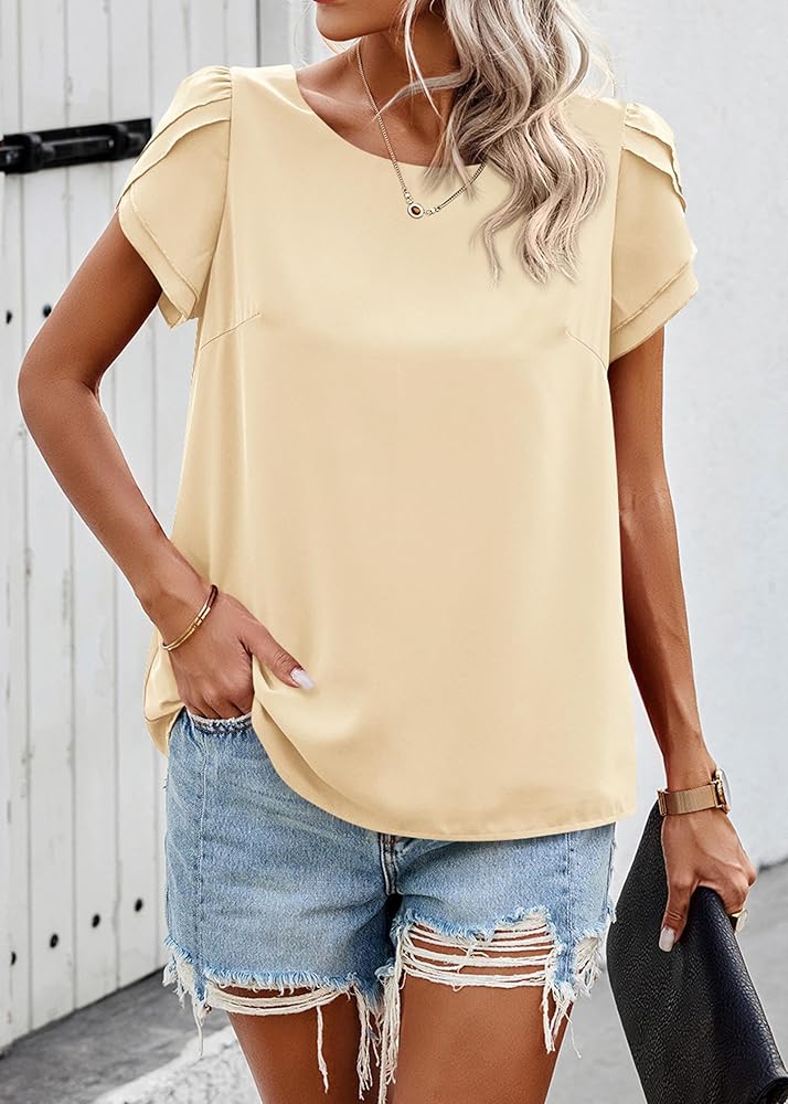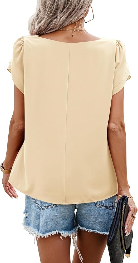 • تفاصيل جذابة: تتميز هذه البلوزات النسائية بأكمام قصيرة مكشكشة، وتضيف لمسة من الأنوثة إلى ملابسك الصيفية. مصمم ليناسب جميع أشكال وأحجام الجسم من خلال صورته الظلية الفضفاضة. سواء كان لديك شكل الساعة الرملية أو نوع الجسم على شكل تفاحة، فإن هذه القمصان النسائية الكاجوال تكمل منحنياتك دون التشبث بشكل مفرط.