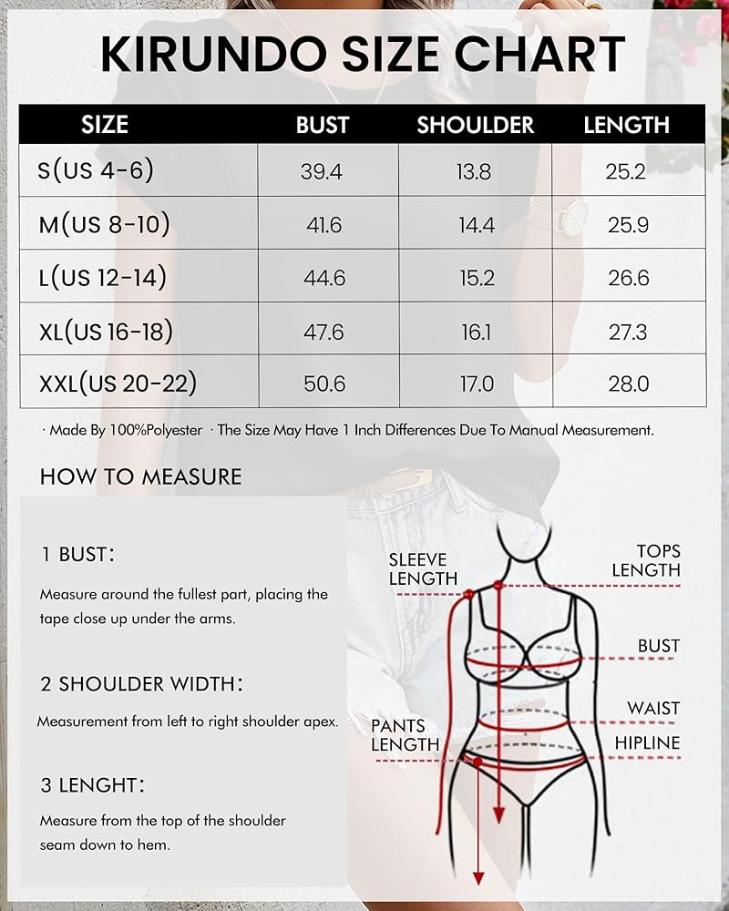 • الميزات: S=الولايات المتحدة 4-6، M=الولايات المتحدة 8-10، L=الولايات المتحدة 12-14، XL=الولايات المتحدة 16-18، XXL=الولايات المتحدة 20. قمصان / بلوزات صيفية للسيدات كاجوال / رقبة دائرية / شورت مكشكش كم بتصميم بتلات / لون خالص / مقاس فضفاض / طول الورك / قماش ناعم خفيف الوزن / أزياء الصيف النسائية 2024.