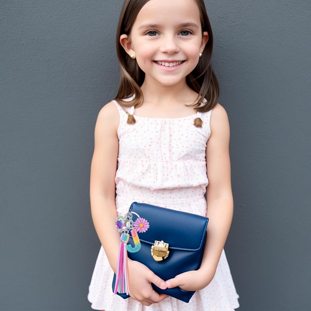 🎀【تصميم أصلي وعصري】تتميز سلسلة المفاتيح الأولية بشرابة على شكل قلب زهرة لامعة ونمط حروف ساطع، قم بتخصيص سلسلة مفاتيح اسمك الحصرية. اجعل الإهداء أكثر شخصية.