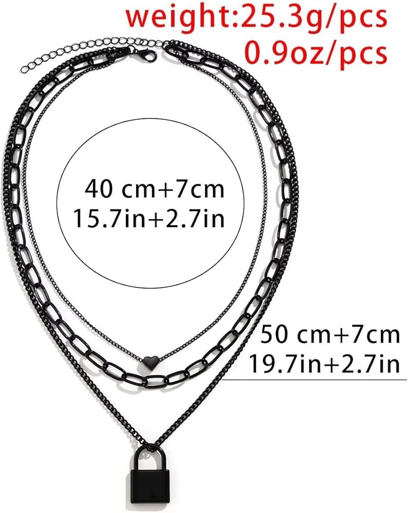 Heart Necklace Measures 15.7 Inches, Lock Pendant Necklace Is 19.7 Inches Long, And Extension Chain Is 2.7". Adjustable, Suitable For Women, Men And Girls.