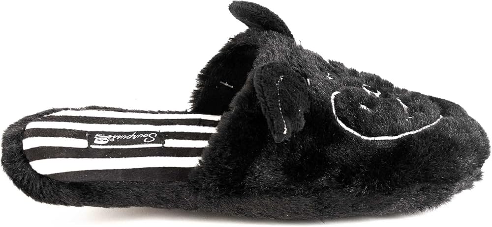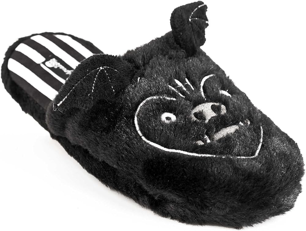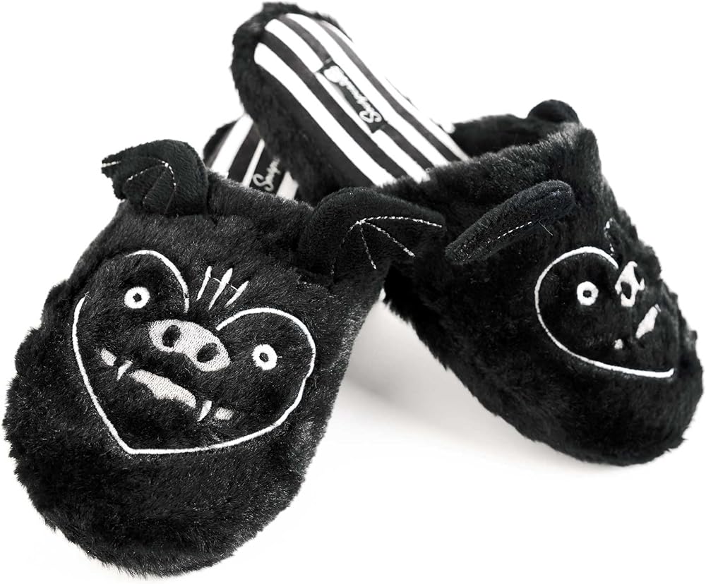 استرخ حول كهف الخفافيش الخاص بك بأسلوب مخيف مع نعال الخفافيش الرائعة الخاصة بنا! تم تصميمها محليًا ومصنوعة من فرو صناعي أسود ناعم وفاخر، وتتميز بتفاصيل مطرزة وأجنحة خفاش صغيرة وبطانة مخططة باللونين الأبيض والأسود. الجزء السفلي من الوسادة مبطن بإسفنج ميموري يبقيك مرتاحاً.