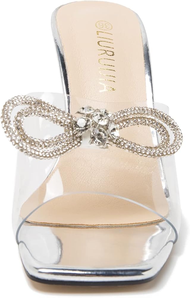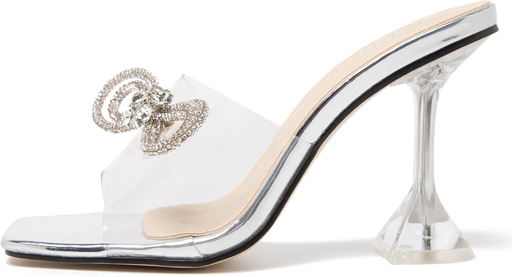 [صندل بكعب عالٍ شفاف] يوفر تصميم الكعب الشفاف المثلث مقاس 7.62 سم دعمًا ثابتًا. يبدو ارتفاع الكعب المثالي مثيرًا، ولكنه مريح تمامًا عند الوقوف والمشي.