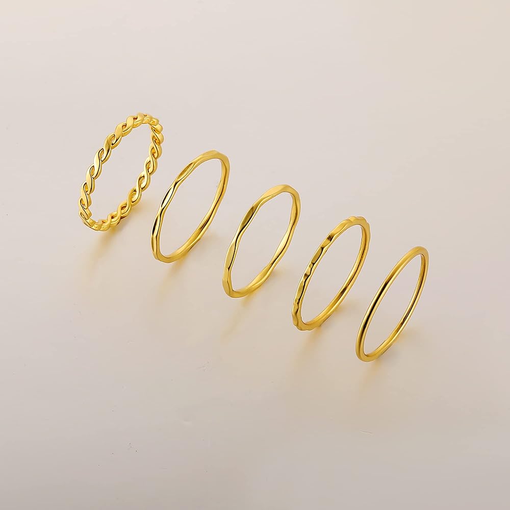 مجموعة خواتم قابلة للتكديس: 5 قطع خواتم نسائية عيار 14 قيراط باللون الذهبي/الفضي/الذهبي الوردي بأنماط مختلفة. هذه الخواتم البسيطة مناسبة للنساء والفتيات المراهقات. يمكنك أخذها كحلقات تكديس أو حلقات مفصل. سوف تبدو أنيقًا جدًا مهما كنت ترتديها بأي حال من الأحوال.