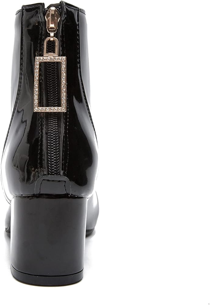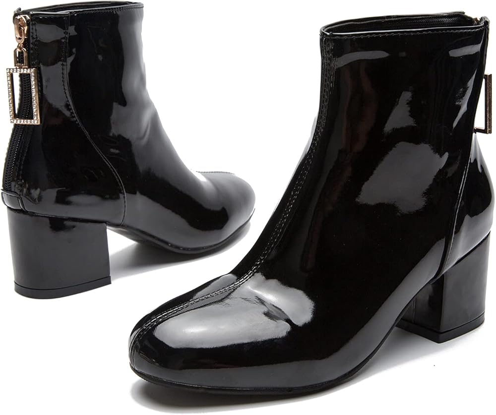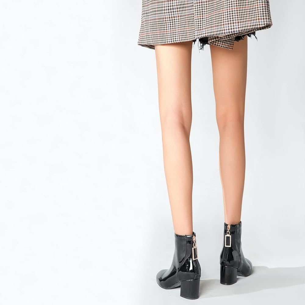 • WINTER SHOES FOR WOMEN: Manmade pu upper, squere toe, reinforced seams, back zipper, Flannelette inside to keep you warm, padded insole, anti-skid rubber outsole, sturdy block heels easy to walk in.Suitable for working all day.These booties are a surefire way to top off any outfit, From jeans to shorts, dresses and skirts of any length.