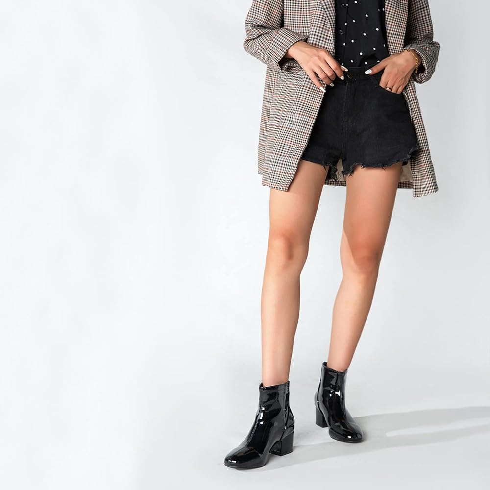 • WOMEN'S CHUNKY HEEL BOOTIES: Heel height: 6 CM/2.36", shaft height: 11.5CM/4.52" from arch.