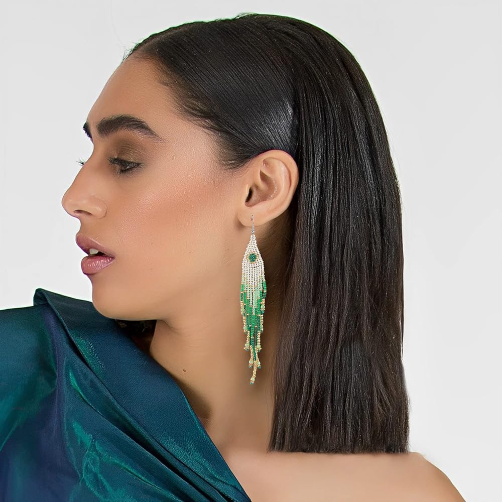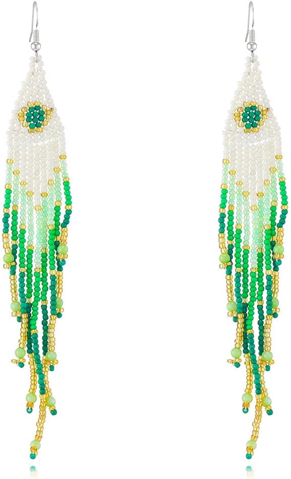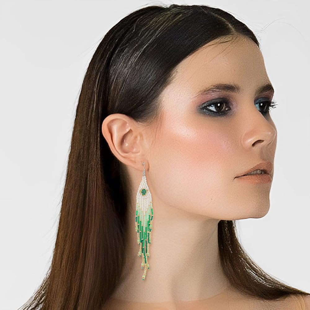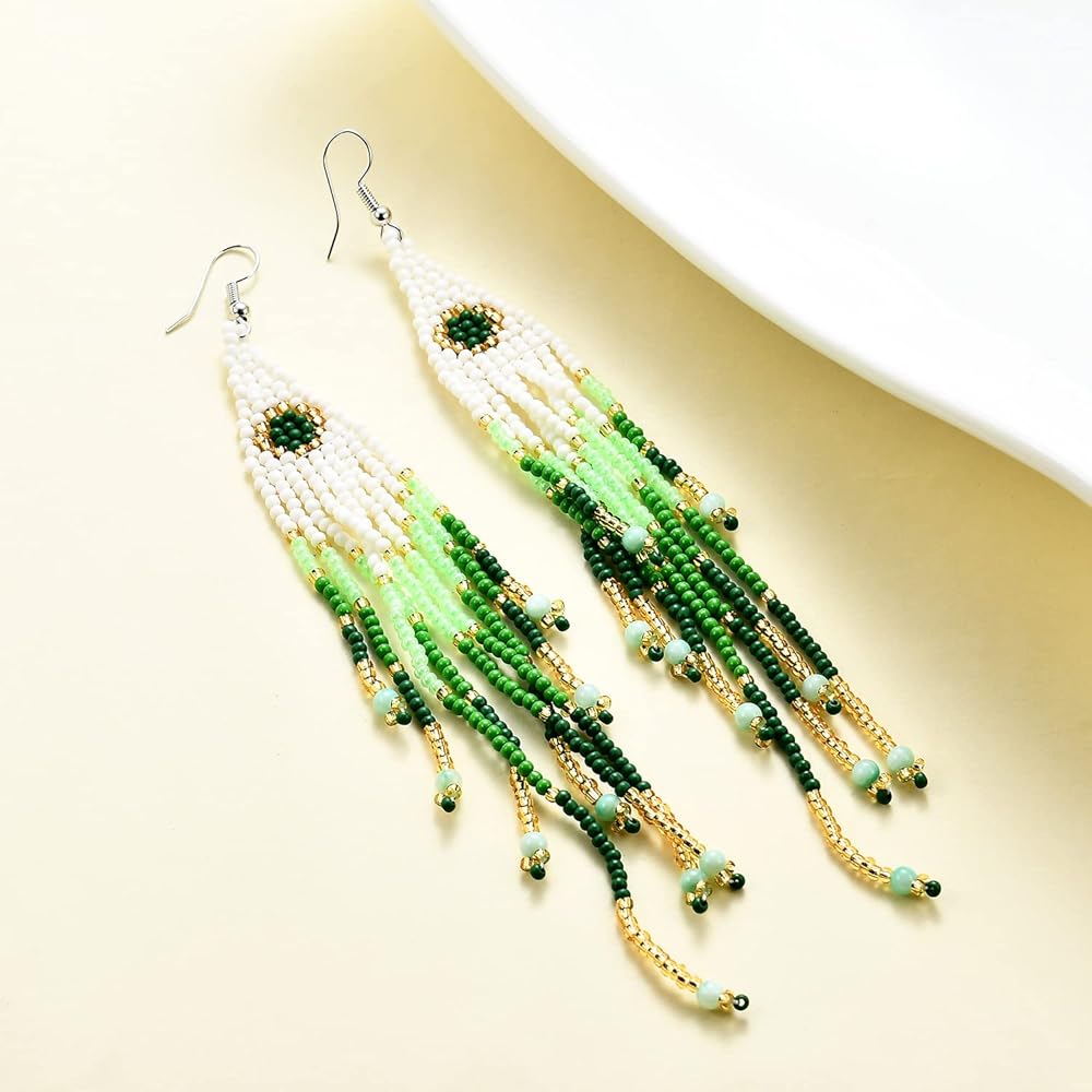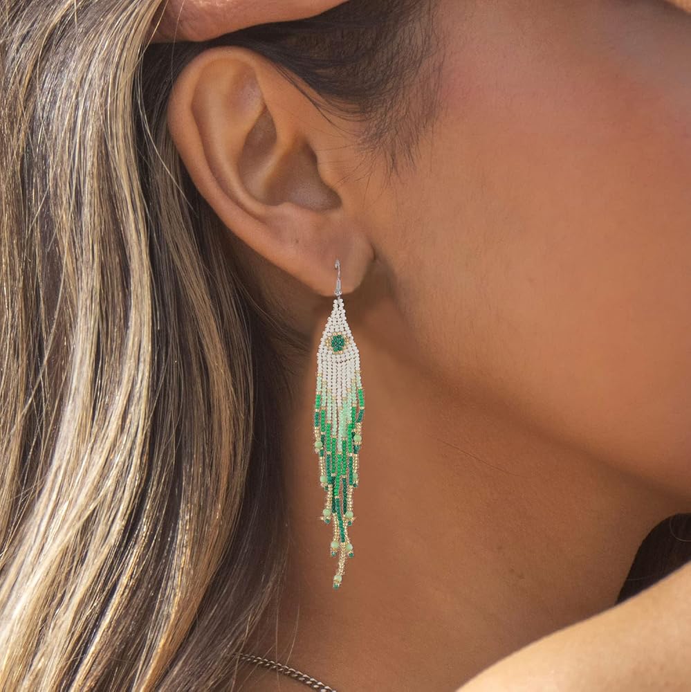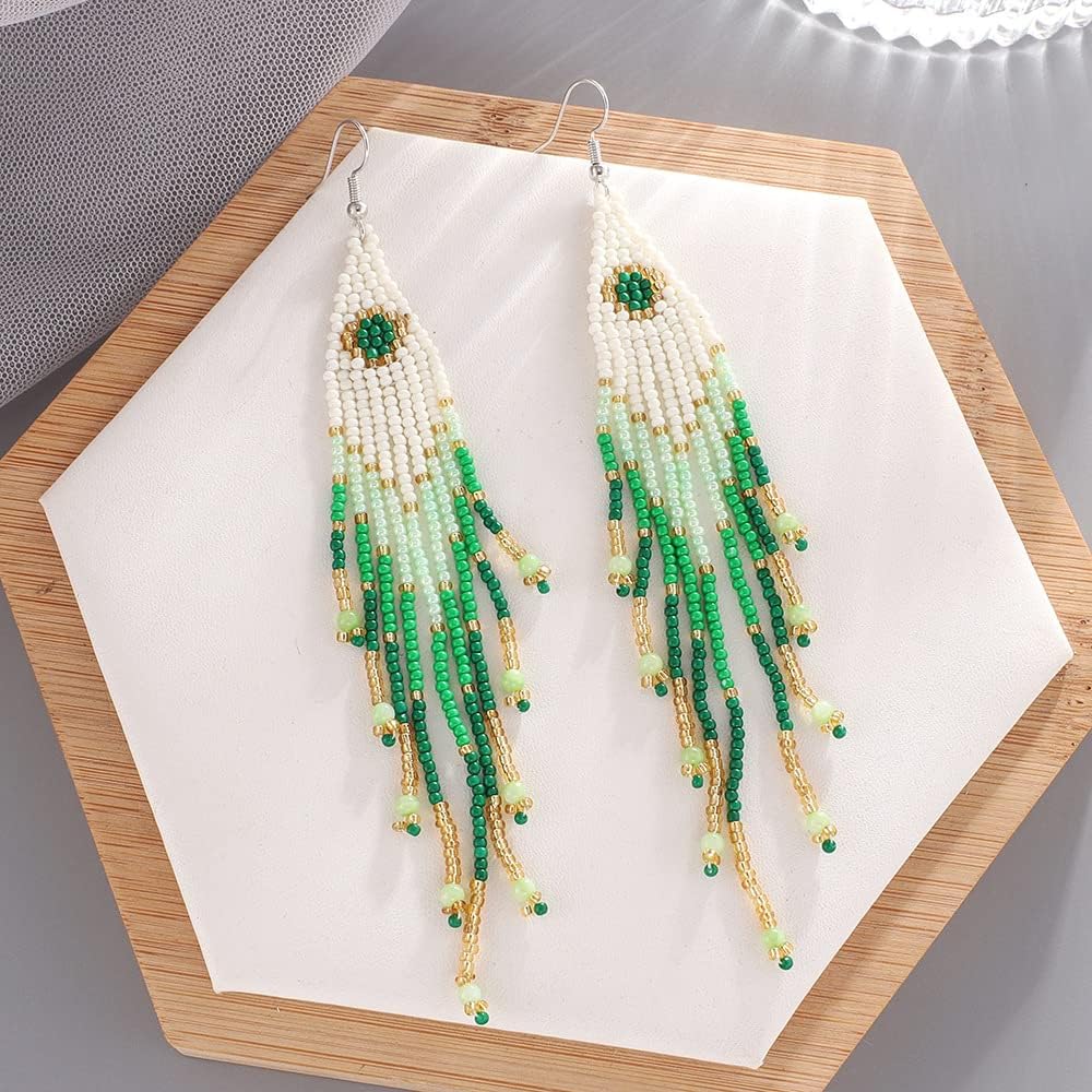 أقراط شرابة طويلة مطرزة بالخرز البوهيمي أقراط مصنوعة يدويًا للنساء والفتيات أقراط متدلية كلاسيكية بشراشيب للهدايا