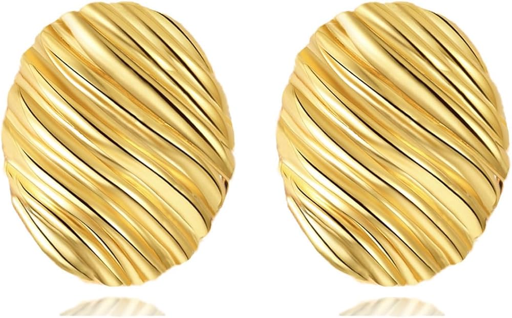 【جودة ممتازة】: طول الأقراط 1.27 بوصة، العرض 1 بوصة، الوزن: 16 جم/0.56 أونصة. مصنوعة من سبيكة الزنك الصديقة للبيئة، ومطلية بالذهب عيار 14 قيراط، وخالية من النيكل والرصاص، كما أنها خفيفة الوزن للغاية ولافتة للنظر، ويمكن ارتداؤها بسهولة طوال اليوم.